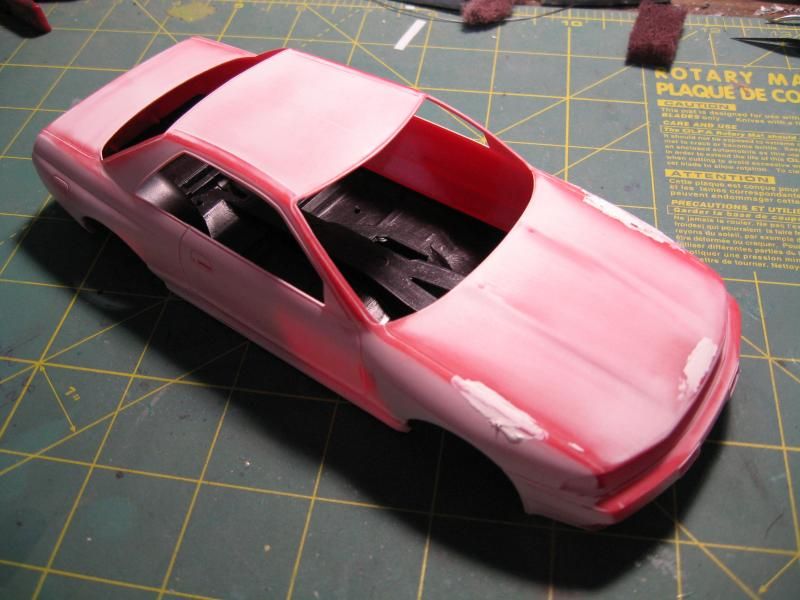 ![]() Color with Mr Color Red Pearl over Super Italian Red with the hood in SMS carbon. ![]() Interior in primer, it'll be a mix of Tamiya Field Blue, Flat Blue and Dark Gray. ![]() Sink marks filled along the fender/hood line and stock rear suspension modified to fit over the cambered parts, also gives it the HICAS rear wheel steering system. ![]()