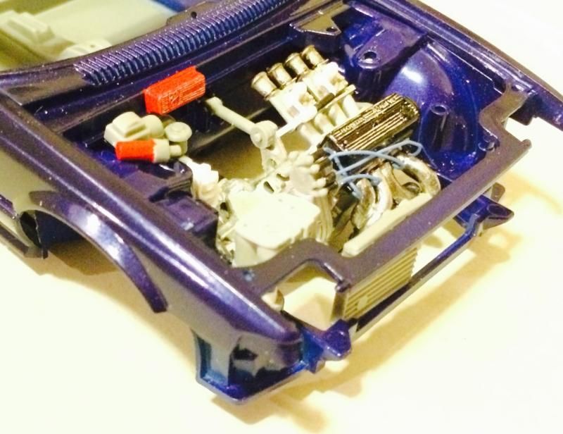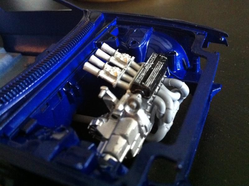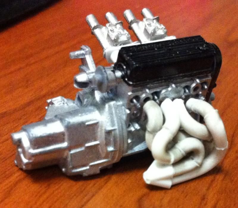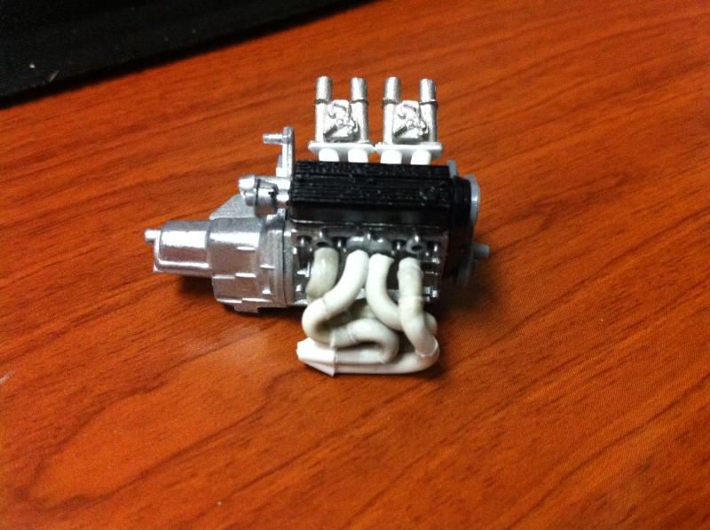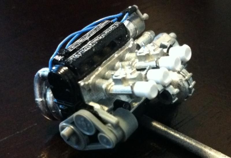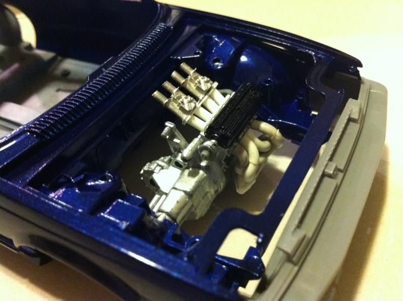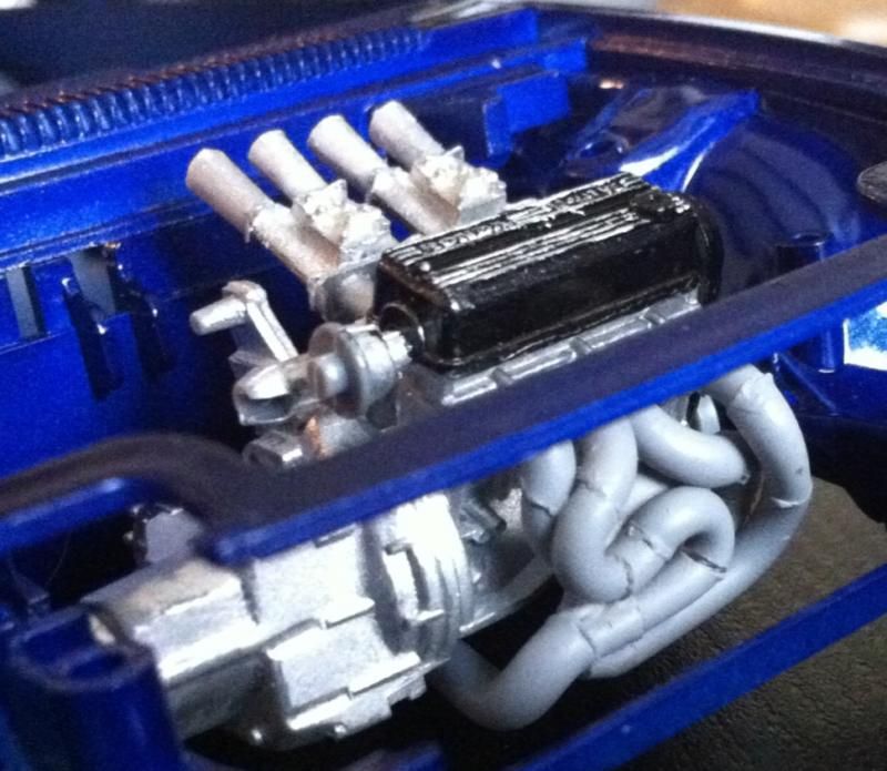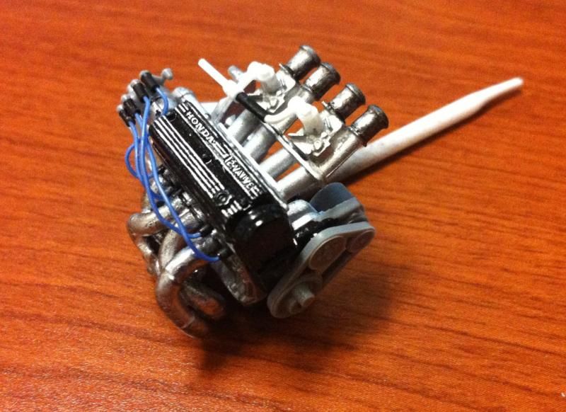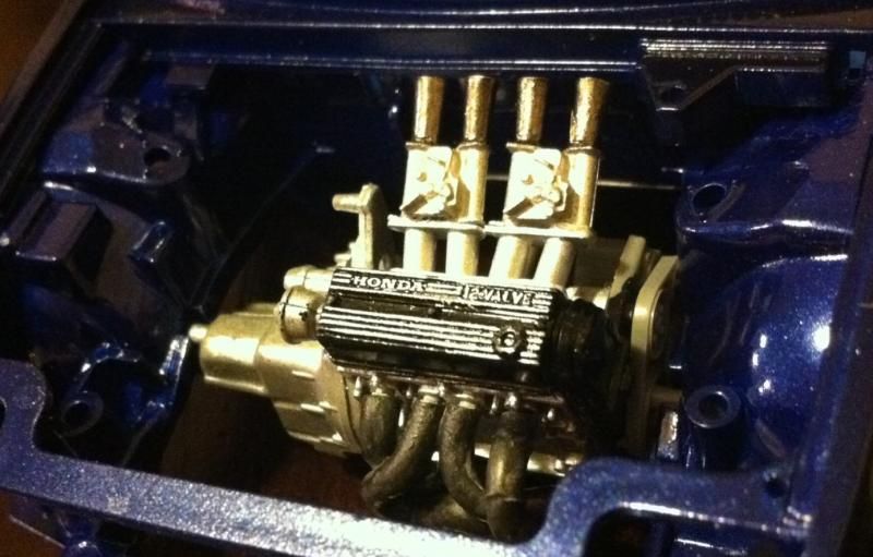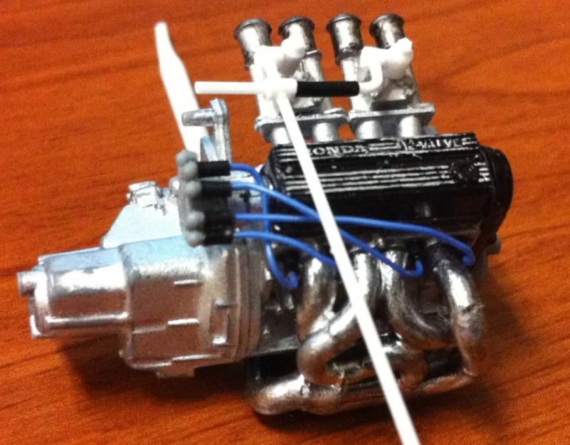 The subject matter here is the Tamiya Prelude XX (83-87 Honda Prelude in the US, as pictured 1982 Prelude for Japan). I purchased the kit a couple of years ago and painted the body blue...and then tucked it away. I figured this would be a good kit to start with since it's got an engine and allows a bit of customization if I so choose. So I took it out of the box after reading the previously mentioned thread. The intent was to just build it straight out of the box but my mind started wandering about upgrades. The first thing I thought was to utilize these Sakatsu carbs that I had ordered probably 10 years ago. They are the right size and allowed me to claim a customized engine piece. It required a manifold adapter so I made a crude piece that got the job done. After looking at it, I felt it needed an upgraded exhaust manifold. My first attempt was a generic high rise style header that didn't turn out so well but my second attempt was a Bisimoto style header that came out pretty decently I think. It took me about 6 hours to make it from styrene including time spent on many mistakes. I apologize in advance, all pictures are taken with my iPhone4 so quality isn't as good as it could be. ![]() ![]() ![]() Satisfied with the general shape and appearance I added pins to attach it to the exhaust ports and did a test fit into the engine bay to see if the assembled manifolds interfered with the chassis. ![]() I did a quick dry brush of the valve cover to capture some details. All was good but then I noticed the funnels on the carbs just didn't look correct so I dug through my stash of parts and tried two different sets of funnels but neither fit. Using styrene tubes I heated and stretched, I fabricated new funnels that aren't exactly what I wanted but look much better than the solid pieces cast into the Sakatsu carbs. ![]() ![]() ![]() ![]() ![]() I added some Alclad II chrome to the funnels, a much needed improvement. Eventually I used it on the header too. ![]() ![]() Then I got to wiring the distributor. The distributor is cast with the plug wires facing directly to the side. I didn't think much of it so I proceeded as is but after looking online at pics of the real engine I see that I should have went with my gut and re-positioned them to be at an angle for a more natural look. So that's on my rework list now. ![]() ![]() While digging through my parts bin I found a few pieces I could incorporate into this model so I said what the heck let's go for it (so much for box stock). ![]() The resin Optima battery was full of pin holes and is warped. It doesn't show in the pics but I plan on trying my hand at entering this model into a contest in a couple of months so I'm going to scratch build another one. Add that to the rework list. ![]() ![]() ![]() That's it for now. Rework items I hope to complete over the weekend. Aside from those I also hope to add some fuel lines, fuel filter (kit piece), steel braided hoses for the radiator, scratch build a half sized radiator, and hopefully both the throttle cable and clutch cable.