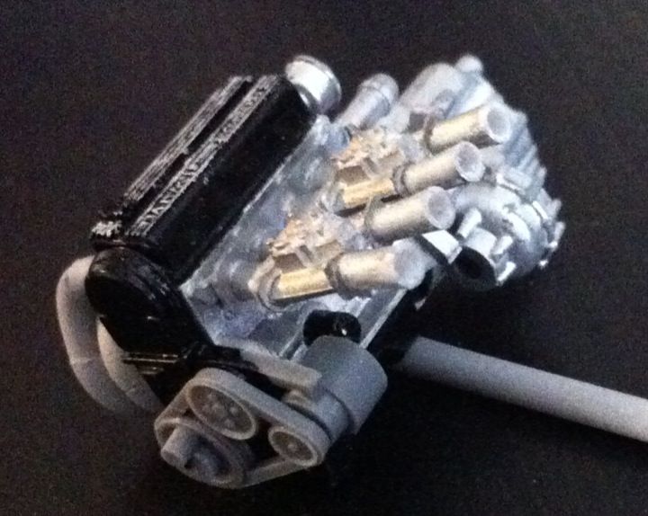 New update. A little more progress. First two pictures show the new battery tray installed and painted along with the initial mock up of the brake lines: ![]() ![]() Then I put the engine and battery in to make sure all was good: ![]() ![]() ![]() ![]() Feeling pretty content but I might redo the brake lines in brass rod. The sakatsu lines were very soft which was good for shaping but lost some of the original bend radii that I had initially created. Speaking of brass rod, here's my first attempt at hinging a hood. I created the hinge as straight forward as could be (worth noting is the hood hinges forward from the factory on the real car). ![]() ![]() ![]() It works! ![]() Moving back to the engine once again, I tried to address the plug wire boots. I started by creating the individual boots seen here: ![]() Then decided to make more without the pin, instead opting to recreate the distributor with the pins on that piece: ![]() ![]() That's as far as I was able to make it because my eyes hurt. One more boot to go and then I can install it on the engine.