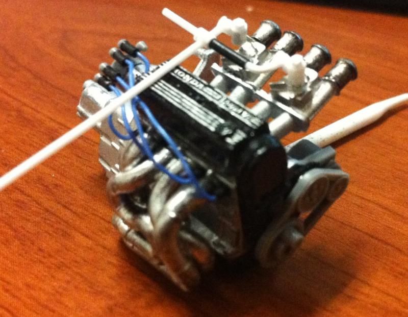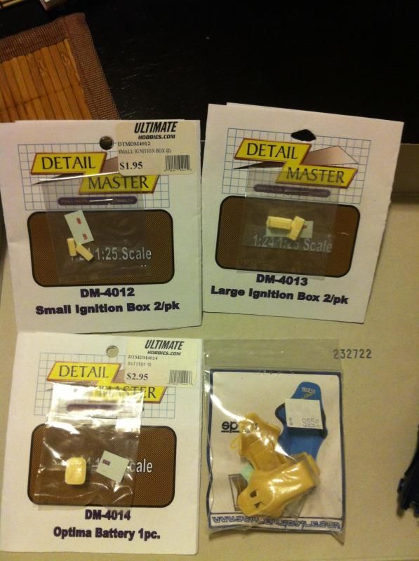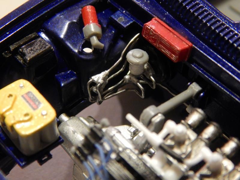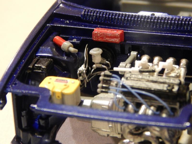 ![]() Here is the new brake proportioning valve mocked up, such a big difference compared to the other one: ![]() So the next thing I wanted to do was run the brake lines but found that I should finish everything around the bay and do the lines last as these will have to snake around any objects that are mounted close by. So instead of the brake lines I focused on the battery, more specifically how it will be mounted. I needed a new battery tray and I figured I might as well make a decent battery tie down while I was at it. Here is the basic tray and battery tie down: ![]() Both the tray and tie down are made from a piece .020in styrene sheet edged with .010x.010 styrene strip. Didn't turn out half bad and those micro drill bits came in handy for the tie down. ![]() And here is the finished tray along with the battery painted. I also fabricated a fuse panel cover because the kit has it molded into the engine bay. Doing this little piece separate adds so much more depth and also allowed me to make it a bit more accurate compared to the generic box shape that the kit has molded in. ![]() ![]() Off subject, this past weekend was Valentine's Day and I decided to pick up a new camera for my wife as her gift. She was nice enough to let me use it so the remaining pictures are using the new camera. Pictures are much clearer now! Finally got to mock up the battery fully painted with it's decal in place. If you look closely the black square around the "A" in OPTIMA came off so I'll need to do a bit of touch up with some black paint later on. ![]() ![]() ![]() ![]() ![]() Testing out the close up capabilities of the new camera: ![]() Here you can see I have the brake master cylinder prepped for the hard lines and you can also see where the rear brake hard lines will terminate on the firewall: ![]() That's all I have for this update. I believe in the next update I'll have the plug wires corrected as the new micro drill bits will allow me to make some decent replacement plug ends out of styrene instead of the black hose seen in the pictures so far. Also I plan to fabricate the remaining fuse box/panel covers and then run 4 of the 6 hard lines for the brakes. Hope you guys are enjoying what is taking shape and if you have any comments/suggestions or constructive criticisms please speak freely. The competition is still a little while away but it feels like it's coming up fast!