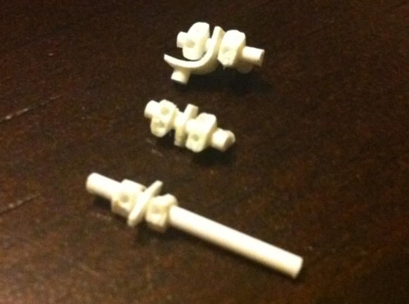 ![]() Here you'll see a couple of practice pieces on top with the 3 main pieces I was planning to use: ![]() On the left of the following picture you'll see the nearly complete piece that has been trimmed down while on the right the raw piece is seen. At this point I also added 1mm hex rod on top: ![]() And this point I felt it would be best to combine the final fitting with the t-connection I had made: ![]() Trimmed down some more, you can see it taking shape now: ![]() Added a hose to connect the two pieces: ![]() And now it's nearly complete. I left the extra length of rod for ease of handling until I was ready to glue it in place. ![]() ![]() ![]() Satisfied with the outcome I trimmed off the extra length of rod and glued it in place. It's not perfect by any means but this is my first attempt at doing this so I'm content. ![]()