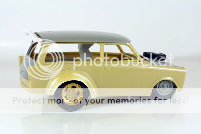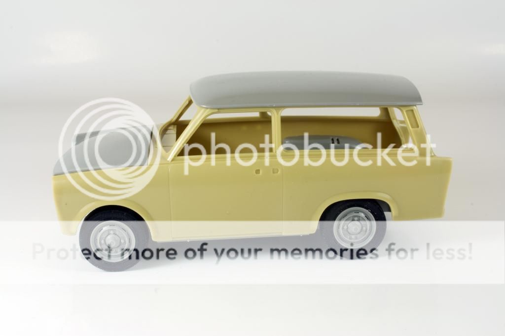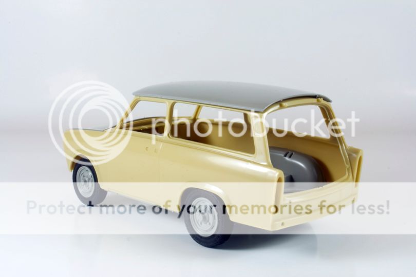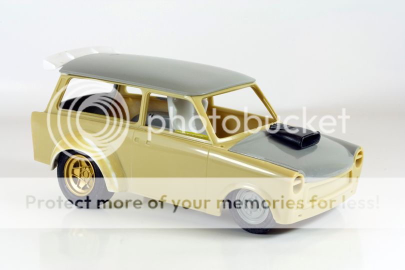 The kit I'm using is the nex Revell Trabant wagon. As mentioned, I'm not building this straight from the box. It will be a dragster version of the car, fully equiped with a rolcage, anti wheely bar, blower, wide rear tyres, ... Enjoy. Original: ![]() ![]() ![]() My version: ![]() ![]() ![]() ![]() ![]() ![]() Still a lot of work