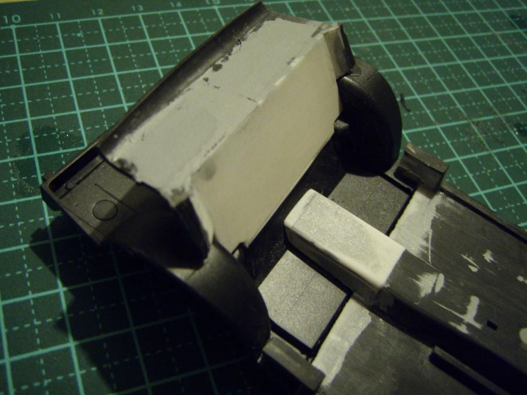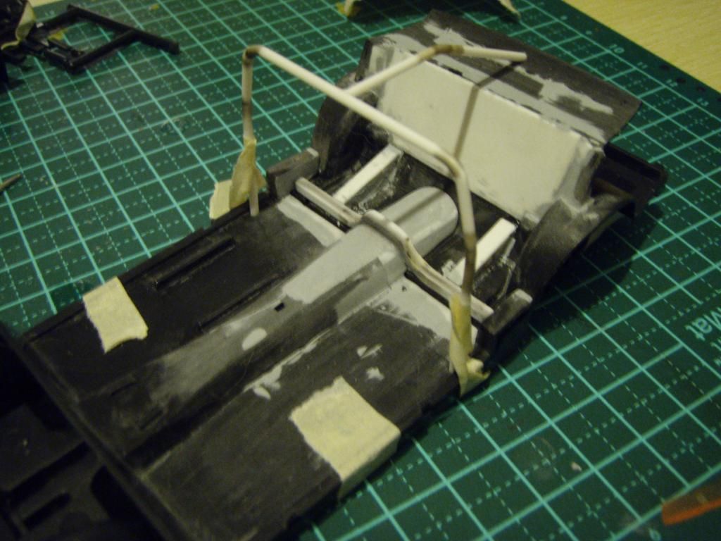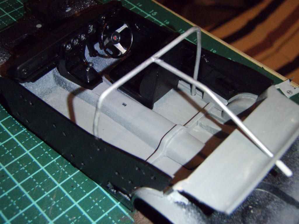 as usual the kit comes with a rear seat, which i dont want. cut out rear seat and fitted with styrene sheet. I adapted standard rear parcel shelf. also extended transmission tunnel. ![]() ![]() on the list to do next....
