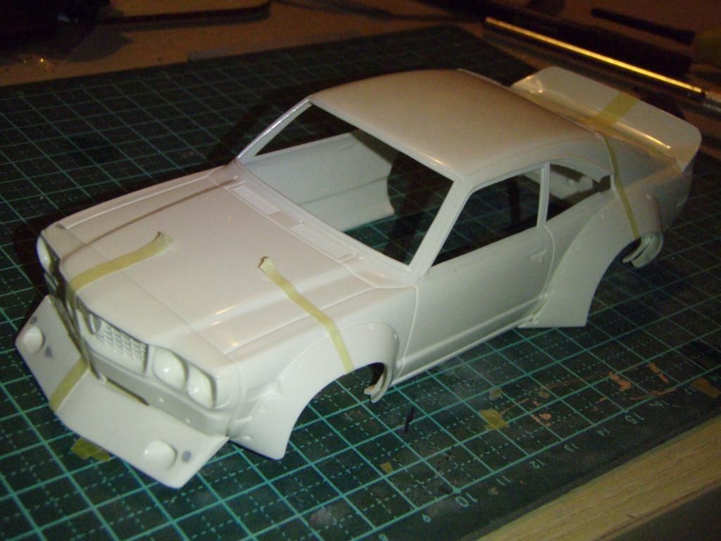 as usual Ive started another one before finishing my current project... ![]() ![]() mazda rx3 race model from fujimi i love the 70's touring cars, especially the jap stuff with the huge over fenders etc so heres what ive done..... step one was cut out for the over fenders. ![]() next up a look at the kit. ![]() in case you think those flares are too big......now thats some dish! ![]() boot lid (trunk) was very badly molded. needed a fair bit of filling, i've also filled the two holes for the number plate, i have no intention of using that! ![]() im very impressed with the detail in the over fenders ![]() test fit.....without optional front lip ![]() plus front lip.... ![]() ![]() ![]() mmmm fills the over fenders well.... ![]()