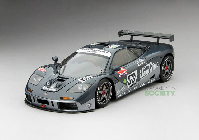 1/18 TSM Ueno Clinic: The glaringly obvious mistake here is the absence of 01R's front fender flares. The colors appear a few shades too bright, although that might just be the photos.