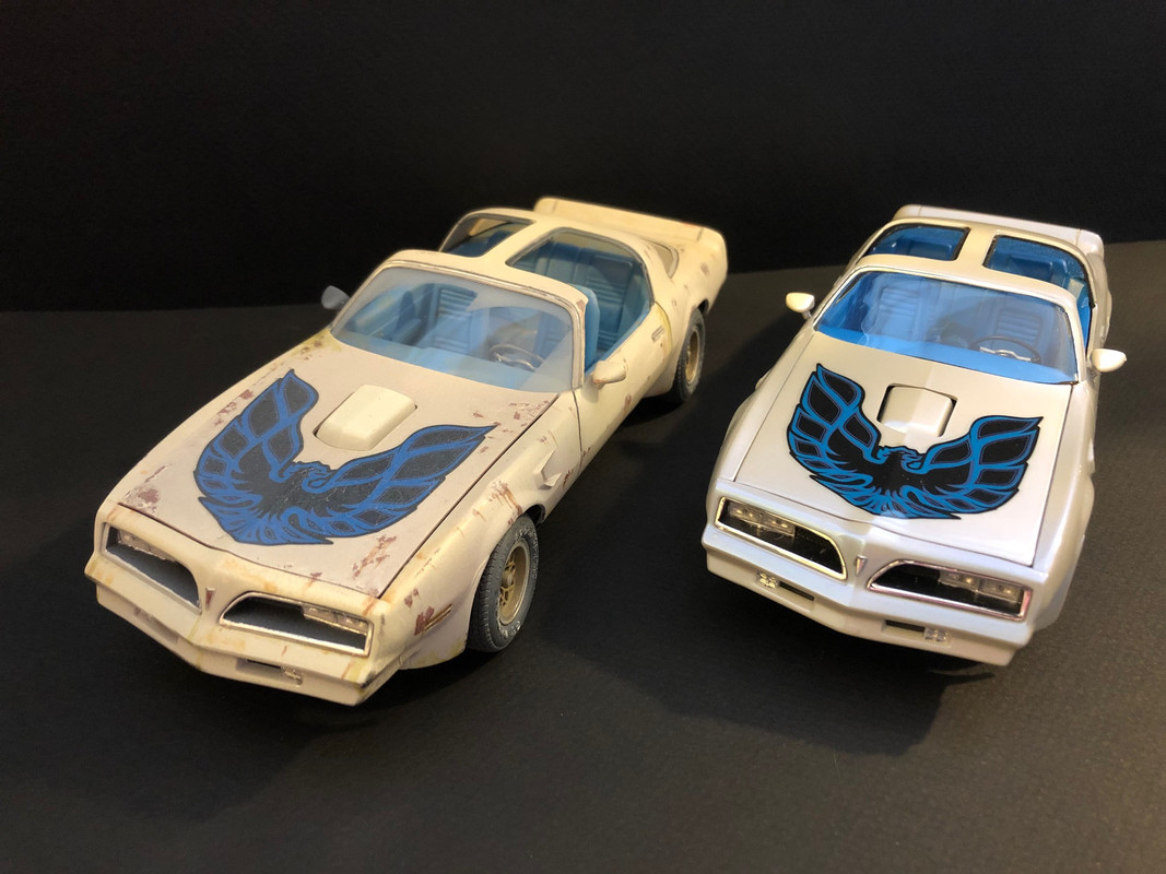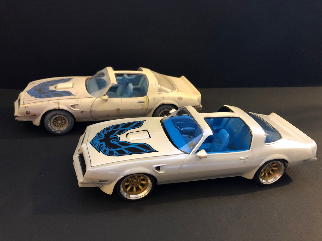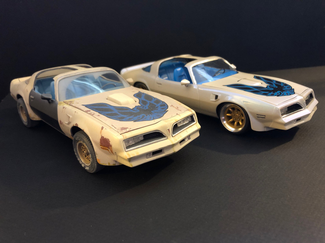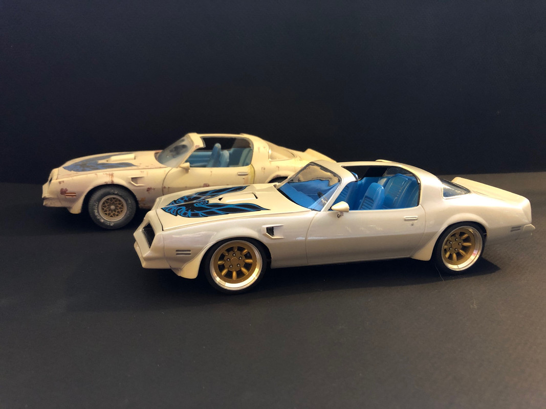 ![]() ![]() ![]() ![]() ![]() ![]() ![]() I bought the firebird and after 2 years of hard work, here is the car: ![]() ![]() ![]() ![]() ![]() ![]() ![]() ![]() ![]() ![]() ![]() Funny story. I built the "clean" version first, for a contest. Subject was to build a car from your year of birth or close. I am more into late 60s muscle cars but being born in 76, I found this 78 firebird in my stash and used it. The kit was built out of the box expect for aftermarket wheels and pearled paint. Once the kit was completed I entered the contest in 2019 where a friend of mine gave me the same kit. I was keen on doing it again but I wanted a quick build. This is how I cam up with the "before" version. Here are the 2 cars together: ![]() ![]() ![]() ![]() ![]() ![]() ![]() ![]() Hope you like them!