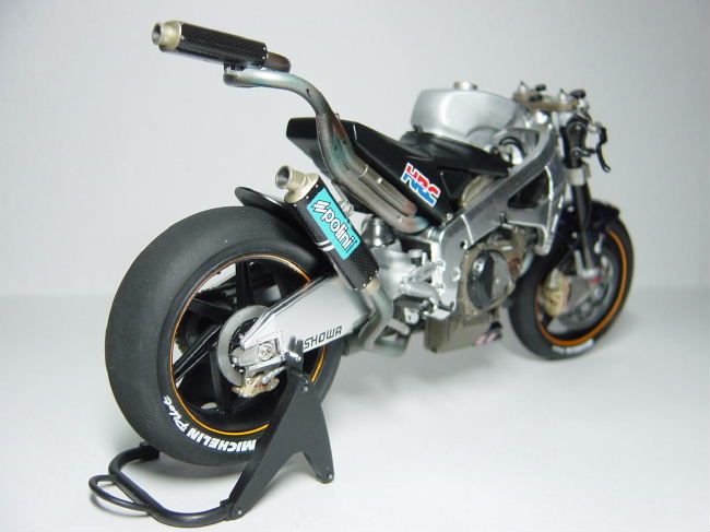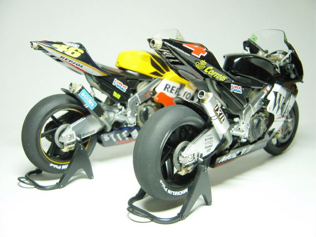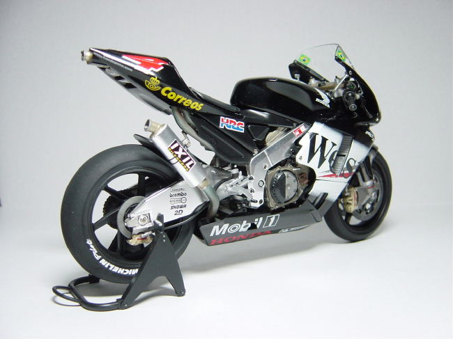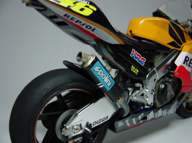 Love the looks of the black bike. I'm guessing the decals were purchased sseperately and applied to the Repsol kit? -Rick |