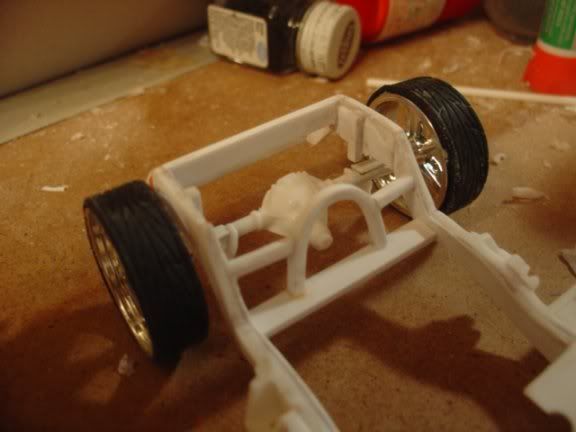 Heres another update, I made the airbags, finsihed the 4-link, primed and did the final body work on the body, and started the interior. The dash is all styrene and the bondo is just to smooth out low spots and little crevices, you will be able to see what I am talking about once I sand it down. There will also be a custom center console that will go back to the back seat and splt off into two 12 inch subs and the center will ahve 2 reverse subs. Hard to explain, but if you ever seen an issue of mini truckin you know what I'm talking about. Here are the pics, let me know what you think.