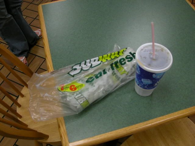 Funny, I just returned from Subway for a little after school gathering. Turkey, ham, bacon melt with lettuce, pickles, and extra mayo with a large drink and 2 cookies. Can't get anything better than that for $5.47.