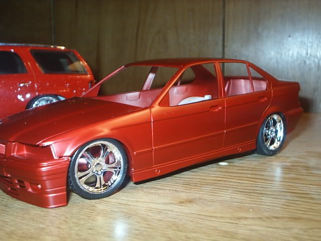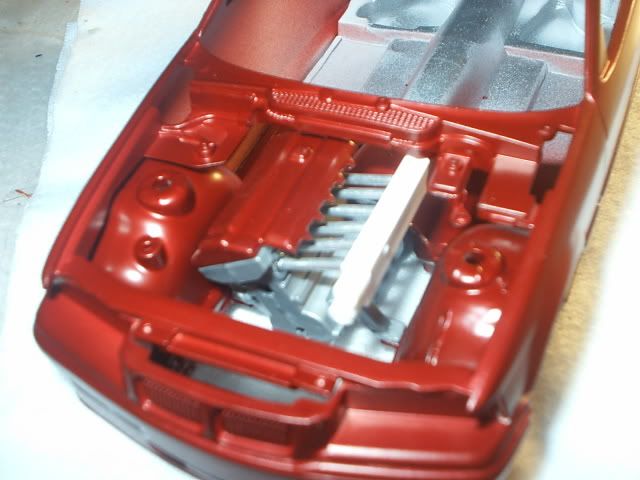 I shared a recently completed model with you so i fugured i whould share a recent birth of a new project. Paint is razzberry pearl by house of kolor, Still needs to be cleared with house of kolor urathane clear. I scratch built a new intake out of aluminum and styrene. enjoy. ![]() |
