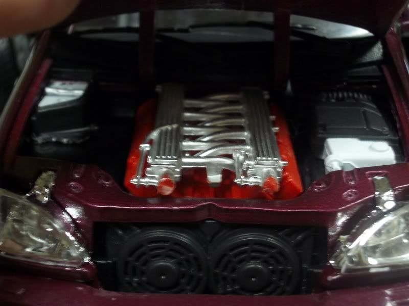 i just bought a maisto ml55 and plan to stick either a 1997 dodge viper (bburago) engine in the mercedes or a 1962 ferrari gto (bburago) engine in it im leaning towards the viper but tell what u think ml55 engine:5.4 liter v8 342 horsepower gto engine:3.0 liter v12 300 horsepower viper engine:8.0 liter v10 450 horsepower i plan on putting viper seats, roll cage, and nos inside rims? need some ideas but im thinking about just painting the stock rims black the car is also going to be lowered ideas welcomed |