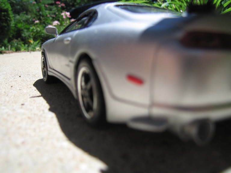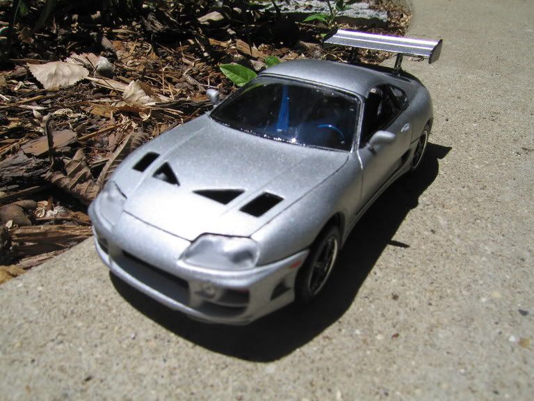 nice! now i kinda wish i had painted my supra silver, looks good. as far as taking pictures goes, see if your camera has a "macro" mode, which is usually a button/setting with the flower on it. this will allow u to take pics of objects up close(less than 3 ft away), otherwise the camera will focus on the background.