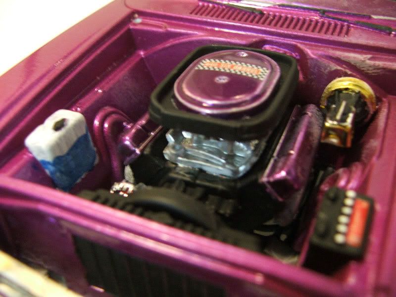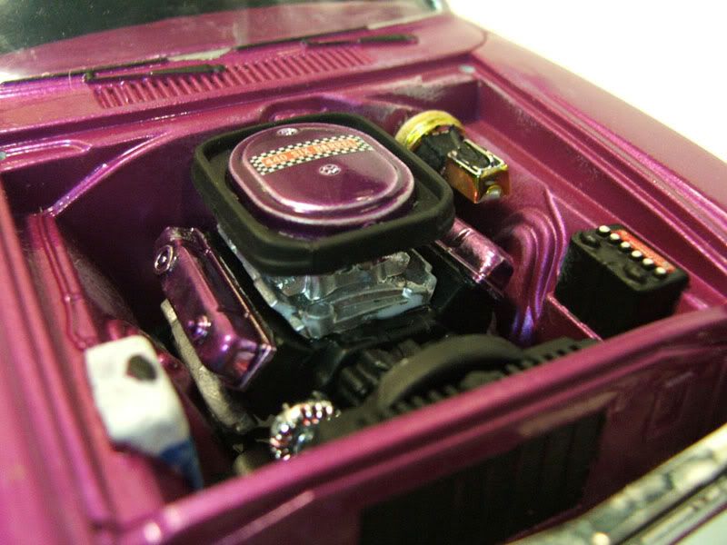 yeah. mine had some definate issues. this is the 4th time the gtx saw paint and i gave up. lol. i forgot to mention that i did the exterior on her car, she picked the color tho, and IMHO with the black accents looks awesome. she was scared, and the color was nail polish...this was my first job with nail polish. as for the oil pan. i wanted it to resemble a canton type drag race pan, they come gold anodized. thanks for the tip on the coolant wash.........i forgot about the coolant catch can, and actually told her to use the clear blue for a windsheild washer bottle. lol. thats typically on the driver's side