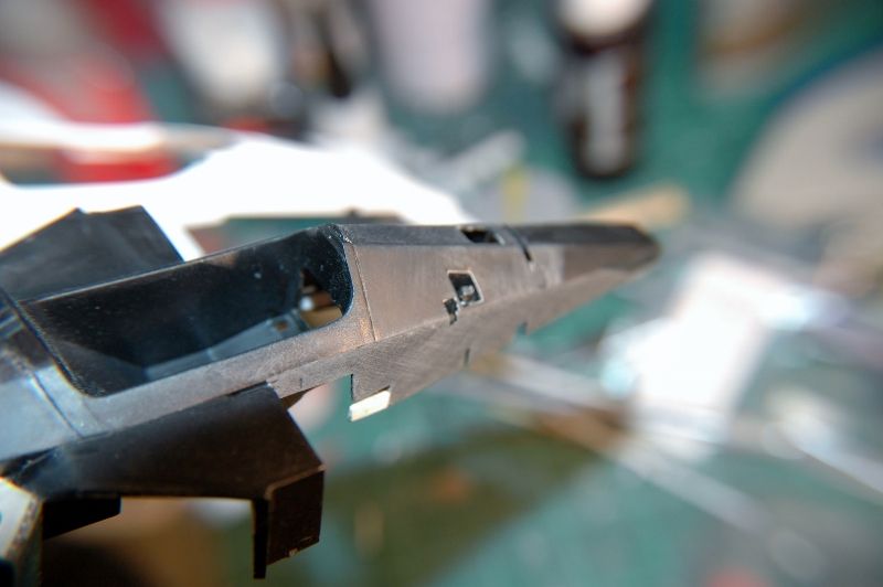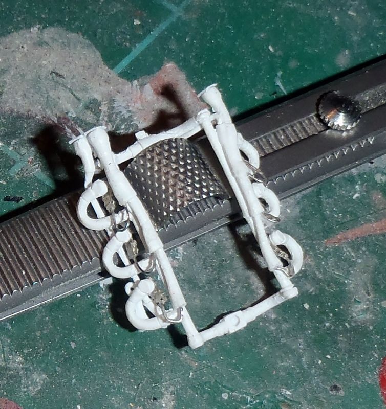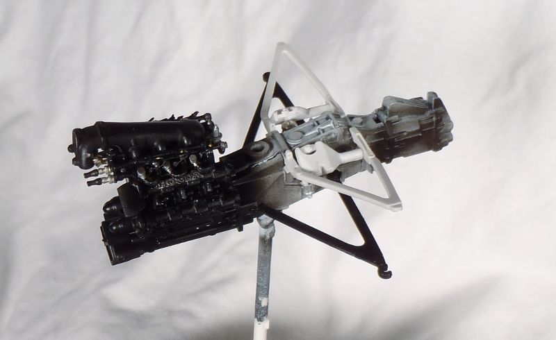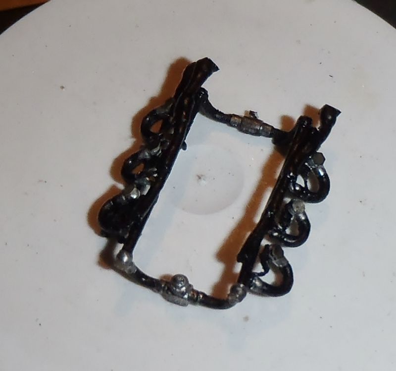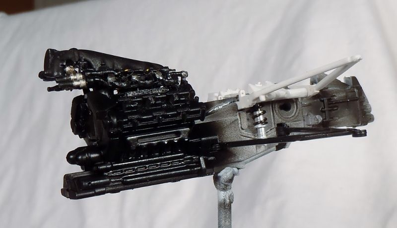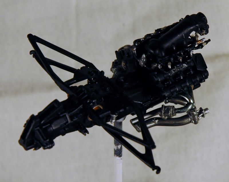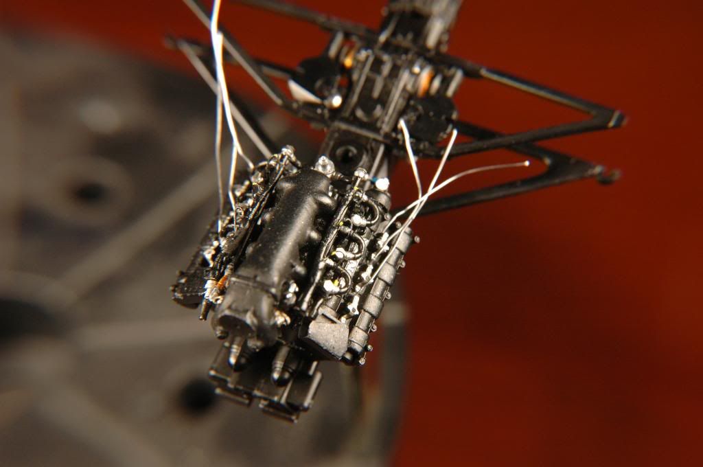 ![]() ![]() These three pictures show the modifications to the kit monocoque to fill in the control arm slots that are incorrect. ![]() ![]() I removed the molded in control boxes, and replaced them with the provided PE pieces. ![]() I attached a couple of PE pieces to the fuel rails, and built 3 of the 6 injector assemblies. ![]()