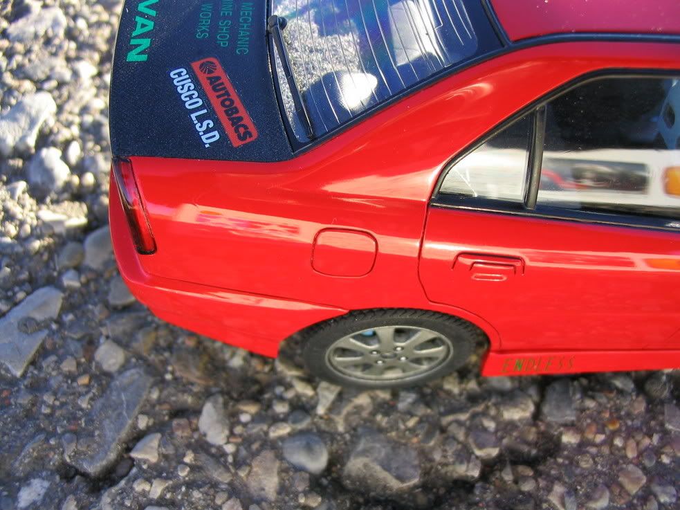 1998-2000 Mitsubishi Lancer MR Mivec (CK4A) -modified from Tamiya Mitsubishi Lancer Evolution 6 -removed Evo overfenders and remade flat fenders using plastic cards and milliput -Scratch built front bumper using plastic cards, rounded off contours using milliput -Scratch built side skirts using the same method -Narrowed rear bumper and removed Evo style contours -Front grille kitbashed and then modified from Tamiya Lancer Evo5 -Scratch built exhaust rear section .......... Walkaround of the car: ![]() ![]() ![]() ![]() ![]() ![]() ![]() Scratchbuild antenna. Looking at Cham's antenna on the Daihatsu Mira makes me want to try out the technique ![]() ![]() ![]() Front grill. The badge has a clear epoxy coating on it. Thanks to one of the AF how to! Light bulbs were painted pink, but only traces of pink is visible here..... Scratch fog lights and tow hook. ![]() ![]() Interior complete with sun visors, mirrors, pedals, red carpet, seat belts, cell phone holder, Recaro knockoff seats, and flocked rear panel. ![]() ![]() ![]() ![]() Sculpted my own gas door. In my opinion their gas door decal on the Evo 6 was the biggest f-up they ever made!!! ![]() ![]() ![]() ![]() The brake discs and exhaust was painted with Alclad 2 chrome. The wheels had valve stems added. "MIVEC" and "ROAD//RACE" decals are DIY. I Totally HATE how much the model attracts dusts. They are just impossible to fully remove!! |