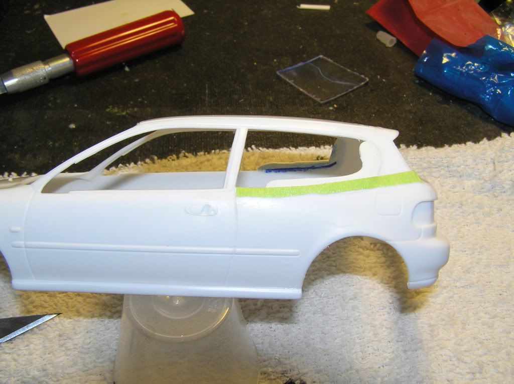 I was discussing this with one of you (I think it was TBTwenty or Willmo) that Hasegawa kind of screwed up the rear side window lines on their EG hatchback model. It sits too low, and is too rectangular.