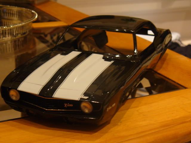 Man this camaro looks superb! I got finished with mine about 2 weeks ago I modified the chassi and body to fit some 1:25 scale 22 inch rims.I also painted it royal blue with the white rally stripes.