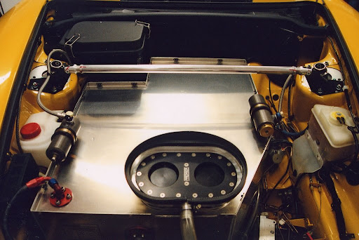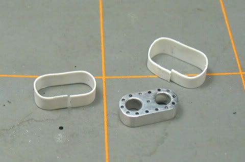 And got nowhere at all with it. Can't really say why, but it just didn't work. I painted it, built the sub assemblies, had it 90% there, and knew that I was just never going to finish it. I just didn't like the color- I painted it in Gunze bright blue. Which is a really sweet color, and it should have been stunning on the GT2 body. But it wasn't. So I stripped it, and repainted it in the same color just to be sure. Still wrong. And really with bright blue not working, I couldn't think of any color at all that would look good on this body. Nothing I could think of seemed like it would work better. Any and every metallic seemed wrong- just doesn't work with the body shape. Red seemed cliche, black was boring, and yellow not quite it. So it sat.... I didn't even take any pics of the body. But I did get some of the chassis. ![]() ![]() A couple evenings in the freezer finally freed the usable parts from the chassis. And so they wait.... ![]() Waiting, waiting... The body at one point spent four months in the alcohol bath stripping- waiting until I could bother to take it out. But it's out now. Stripped bare of it's former color. It even has a fresh coat of primer, and new paint now. After months/years of occasional contemplation, I finally concluded that it could look good in white. After all, it looks quite decent that way on the box top! So white it is. ![]() And it's feeling much better now. Strange that I should have so much trouble with this one- because I really dig the car. Sure it was kind of a cheap marketing trick for Tamiya to put out the GT2 Club Sport, which has only a dozen new parts from their racing GT2 kits. But to me, this is what a car should be. No bling, no flash, just simple speed and performance. So that's what I'm going to do with this one- a simple trackday toy. Mostly out of the box, as I really want to finish this one. But not strictly out of the box. ![]() ![]() Paint is PPG acrylic lacquer white, from the remnants of my stash of CobraColors. It's been clearcoated, and is ready for polish. My wife has decided that the GT2 in white looks alot like a Beluga whale. Can't say I disagree. So I gave it a blowhole.Like most 911s, the 993 GT2 has its fuel tank up front. On racing/track cars, a dry brake fuel filler could be mounted in the center of the bonnet. The Tamiya kit has the outline of a hinged flap covering the refueling receptacle. I decided that cutting it open would give alot of visual interest to the body. ![]() This is the look I'm going for. But of course with the flap cut open, something has to be put into the hole. ![]() Something like that thingie there. So off to the machine shop...! I started with a small block of aluminum, and drilled a bunch of holes in it. ![]() ![]() Then, something had to be done with those square corners. So I step cut them off- same way I make oval air cleaners. ![]() ![]() Lots of math so far, but it serves a purpose. If all goes well I simply file down the steps and come out with the oval shape I want for the part. ![]() ![]() Filed and polished. So far so good. Next I wanted to add the sill and flange around it. I decided to go with plastic strip, shaped around the part. ![]() This is Evergreen styrene strip, wrapped and clamped to shape. Of course styrene has the useful property that it can be heat shaped. Dip the strip in boiling water, and it will hold the shape it's formed in. ![]() I made two, one for the sill and one for the flange. ![]() The part was painted with clear smoke, to give it an anodized look. ![]() ![]() And fifteen small brass pins and two aluminum plugs fit into the drilled holes. ![]() ![]() ![]() Ready for mounting. Time to polish the body and see how it will look in place!