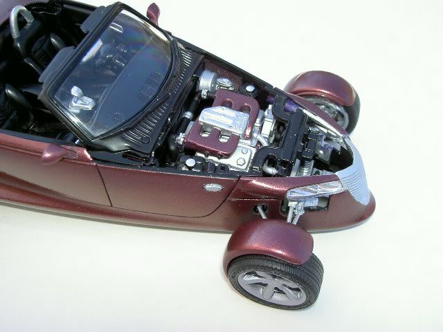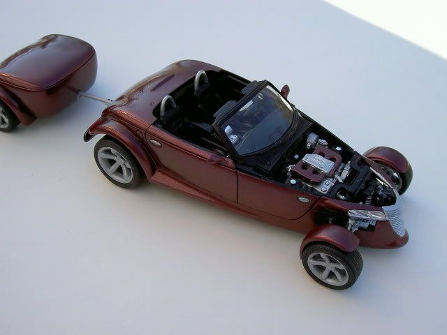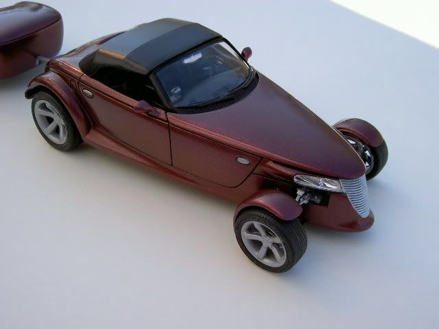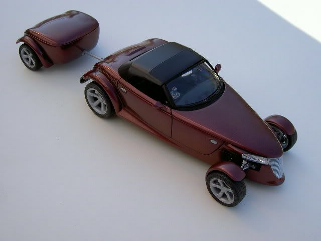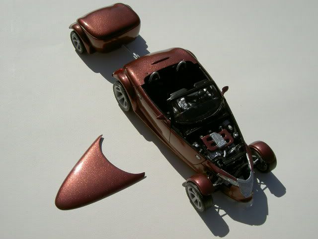 I have managed to complete one project recently, its this Revell Plymouth Prowler, i used almost 3 bottles of nail polish on the body. The wheels were stripped of their chrome and repainted with something a bit duller. I left out the ugly front bumpers. Pics arent that good but anyway............. Mike ![]() ![]() ![]() ![]() ![]() ![]() ![]()