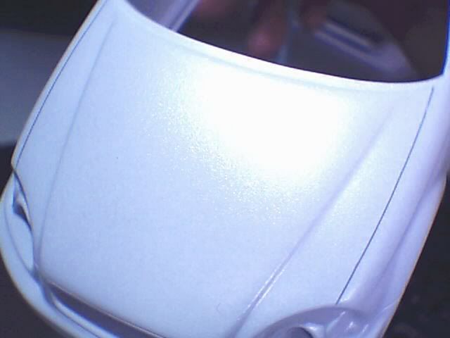 finally i repspray it but theres a little problem.. what do you call this textures? is it an orange peel? it appears after i painted 2 coats of primer and 2 coats of tamiya pure white. and how do i get rid of it..?