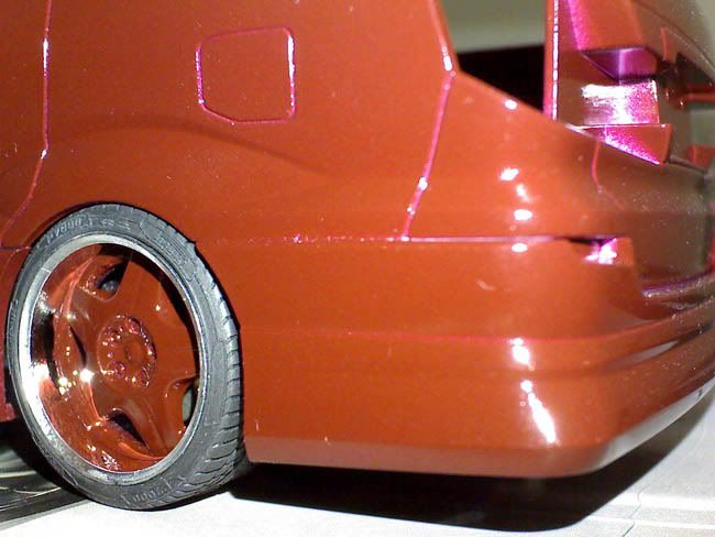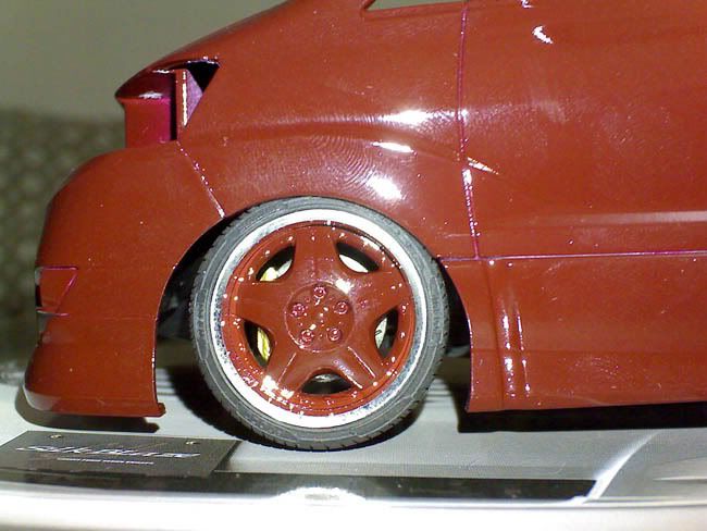 ![]() ![]() ![]() ![]() ![]() Try to fit with the chassis after paint. ![]() Little bit like dark brown... I think because the flash light from my phone camera. In reality true maroon... ![]() ![]() ![]() ![]() About the kit itself its pretty good,but not good as tamiya.Aoshima still has miss fitting.You get 2 front bumper,2 rear bumper,2 rear spoiler. The wheels doesn't match with the box picture. I also paint the center rims match the body colour,and I'm using new tamiya pearl clear TS-65. |