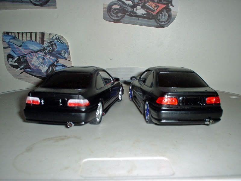 my honda civic v-tec turbo twins 99 civic si and 93 civic couple this is my very first paint jobs so they are not perfect the cars were already built but i didnt get around on painting them until last week