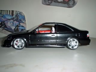 93 civic turbo 99 civc si turbo engine and my ford thunder bird low rider painted with blue metal specks and some of my other models rsx,civc hatch back,eclipse,corvette,shelby gt500,and mustang convertible lowrider the rsx is going to stay white aswell the civic but the eclipse will be blue metal specks also the corvette the gt500 will be red and the mustang will be black and im thinking of taking the lowrider wheels off the mustang cause it looks ugly and some jada toys cars evo,red 240sx,black240sx,and celica i got more but these are my best one that i only wanted to show |