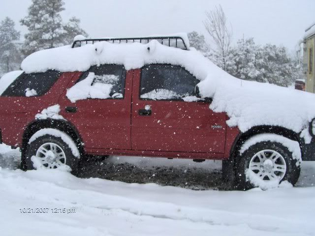 My Rodeo didn't come with the flares that are on it, from factory, I grabbed those off a junk-yard '96 Rodeo bout 2 months ago or so. If you'd like to know of a very inexpensive wax program set-up that you can/should be able to get a Walmart or Checkers that I use on both my Burgundy vehicles; brings the speckles right out and lasts for quite a while. 2 products you'll need are: Mother's caranuba *cleaner wax*, apply this after washing the truck on a dry surface. Then very soon after that, apply Mother's Synflex wax The cleaner wax will assist in carefully removing any paint contaminents and prepare it for an actual coat of wax....I HIGHLY recommend a synthetic wax, following a very mild cleaner wax as the synthetic lasts longer, at least in our Colorado harsh sun. And, the Rodeo in my picture, has NEVER spent more then 3-4 days in a garage; she sits outside in all elements 365 days a year; not too mention she's been used as a 4x4 trail truck, tow/boat hauler with many many days in the hot desert sun during our 5yr life-span of living in the Vegas, NV territory. The two products I mentioned can both be bought for around $20-25 at most together; make sure to use VERY soft material. Here's the Rodeo fresh after last wax job....I typically wax every 3-4 mnths ![]() I applied a 2nd coat of the Synflex wax several days later to ensure full coverage ![]() Oh, and the wheels, I got them through Disount Tire during one of their sales.