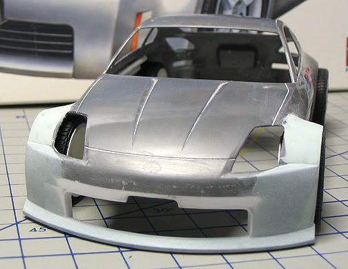 Half of the front bumper has been cut off and re-created. Armed with my trusty plastic card and putty, I began to just throw things on and let it take shpae gradually. The front end looks to have a fairly good profile/shape thus far- I'll probably leave it alone until the first shots of primer. The fender flares are halfway done as I don't want to finish off the bottom portion of it yet until I figure out what to do with the sideskirts. I envision the rear end to have blister flares blended into the body. Won't know how that will turn out until I start working on it. As always, this is going to be one long build ![]() ![]() ![]() a. |