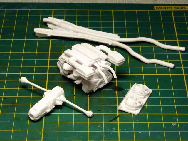 So thus far you'd say the kit is nicely detailed, but has fit issues and is warped in places? I've been wondering if this is a good one to pick up for an 'easy' build. The 612 is not a Ferrari I love so much that I'm likely to get sucked into an 18 month project on it, but I wouldn't be keen to spend months having to fix obnoxious flaws. The engine looks like it has some nice detailing potential. Are the accessory drive belts molded in place there on the engine front?