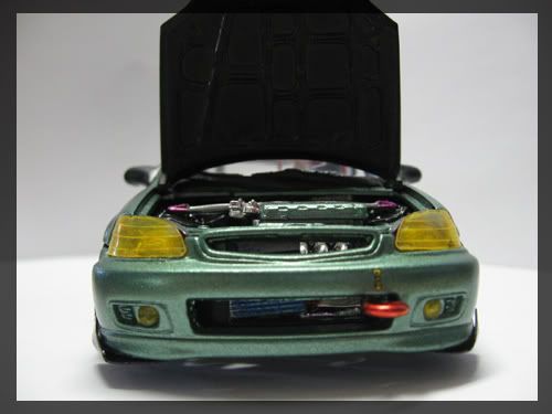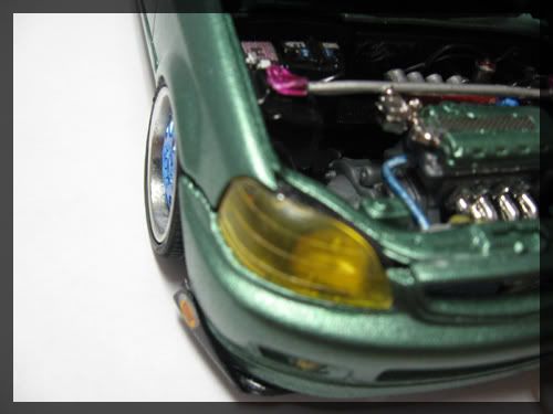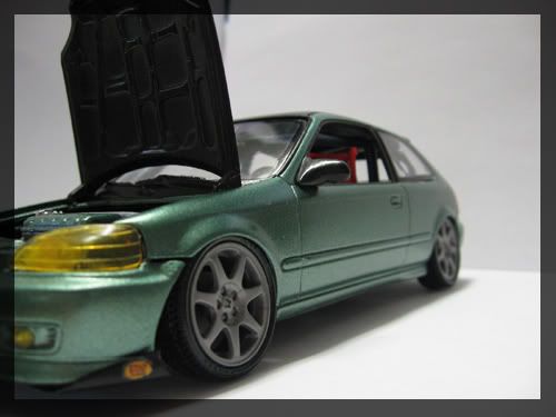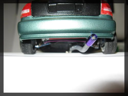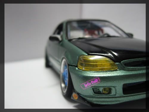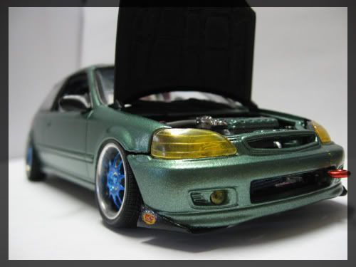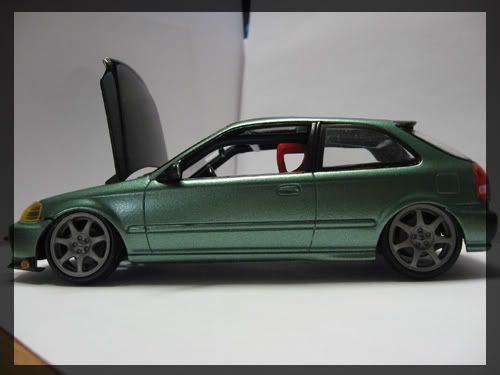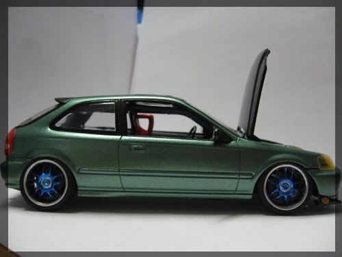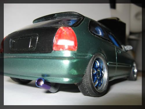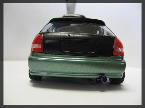 Looks nice, the exhaust tip seems unrealistic. Also the tow hook is great, but seems a little too big in scale. Some orange peel on the roof, polishing may help out. Overall a nice civic.