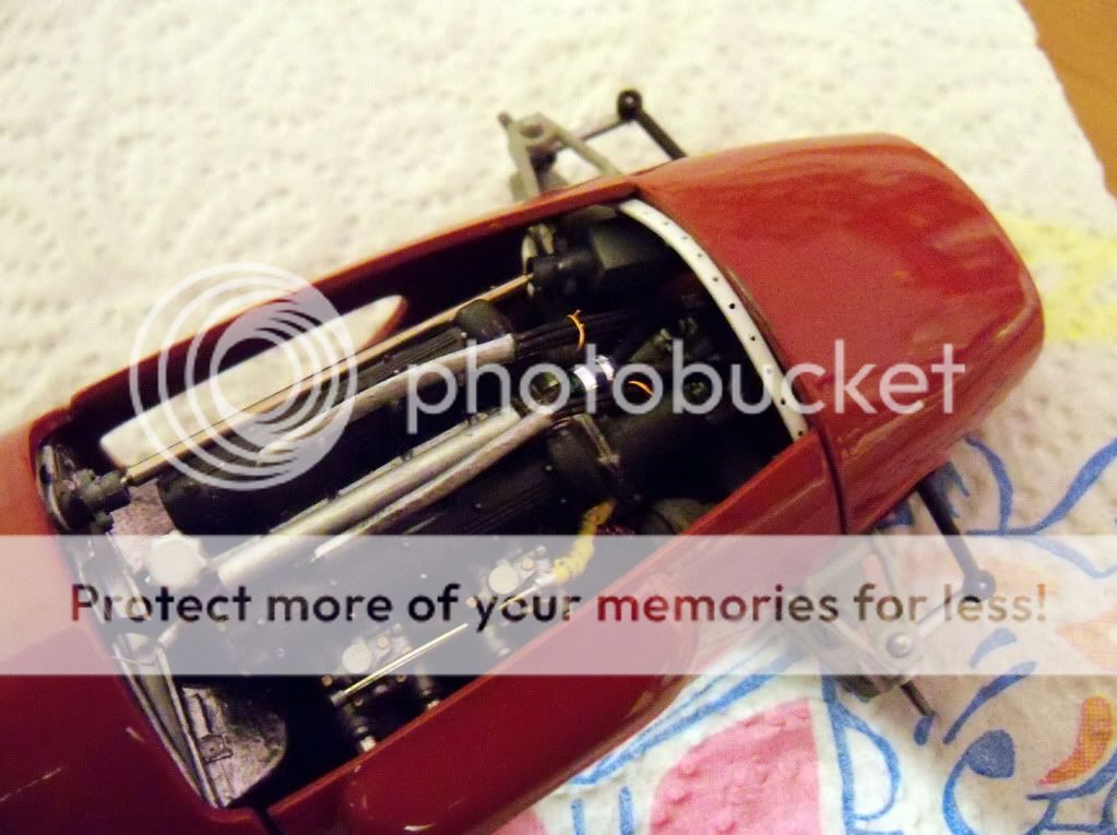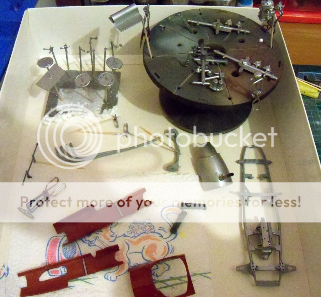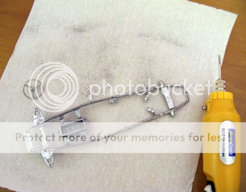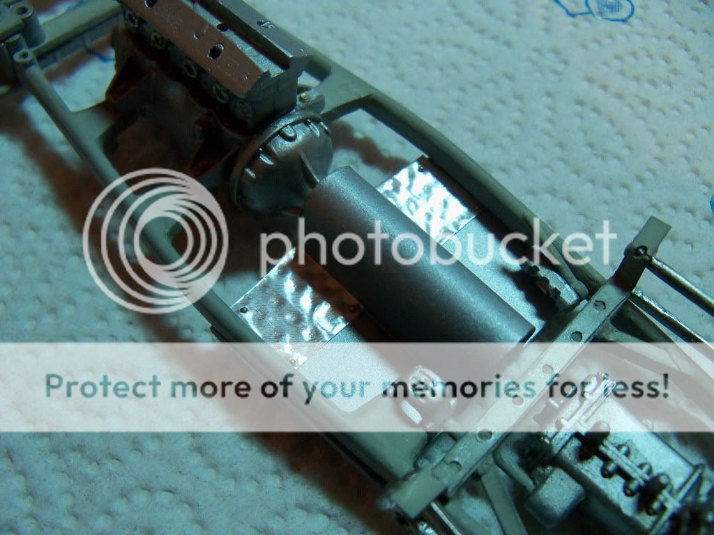 The engine from kit are very basic, so I add some additional details. Some tubes... ![]() ![]() And after a lot of work I take this... ![]() ![]() The tank added to chassis... ![]() During the engine wiring job, I also add some of them to the brakes ![]() ![]() Now its time to attach the body parts to chassis... A realy difficult job, thank to poor kit fitting and some errors in Revival's design. To fit this, I cut some parts and I make new holes for screws. The glueing process... ![]() ![]() The "V" are from Victory ![]() Thanks for looking and for your comments... |