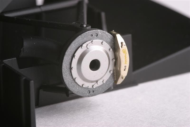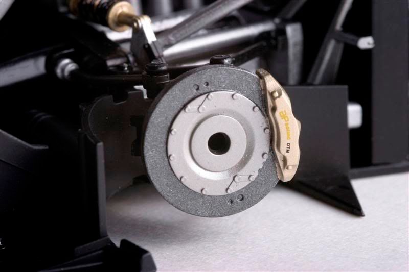 Excellent build so far.I think you have made a good job of the brake parts,the painting is very good.The decals on the tyres would be less noticable with a light coat of satin or matt varnish.I usually use Vallejo Air varnish for this task.Cut a small circular mask to hold in place around the wheel rim to ensure you only get the varnish onto the tyre wall and just lightly dust the varnish on in thin coats.Also if you havn't tried it yet I sometimes use a little MicroSol decal setting solution on the decal,this will usually make the carrier film less noticable and you may not have to varnish the tyre decals at all.Where did you get the little stands from? Were they included in the kit? The model looks very nice sat on them.I'm looking forward to seeing some more progress pictures.I have a similar kit in my to do pile in the Warsteiner colours (the black one)