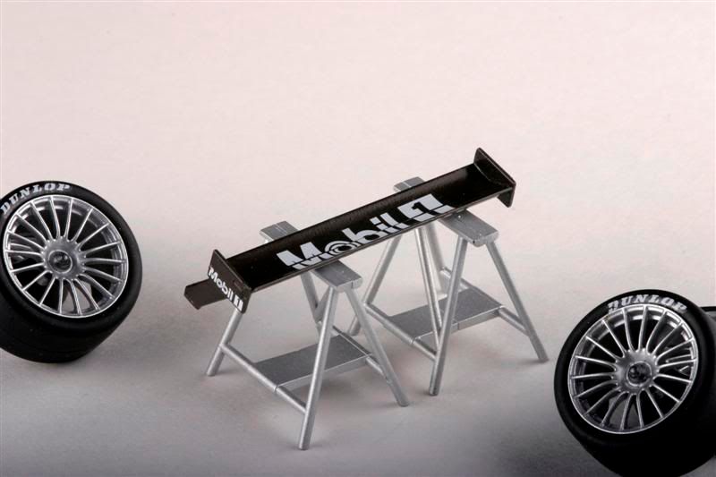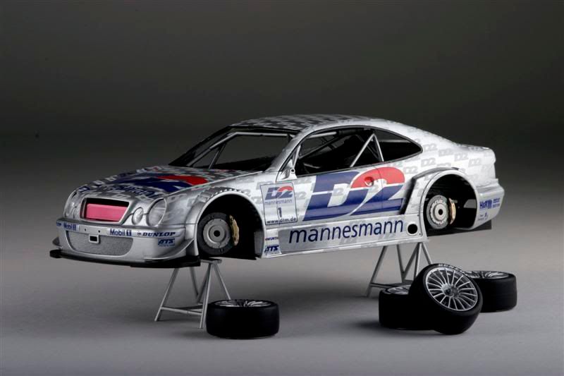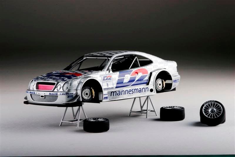 The stands are taken from the 1/20 Tamiya FW-24 Williams kit. They could probably be scratch built pretty easily. I'd like to find the black Warsteiner as well. Then the CLK collection is complete. I think S27 makes a decal sheet for the white Service 24h as well. The Original Teile is next. That should be a fun decal job! |
