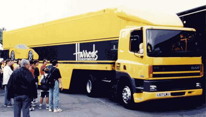 Thanks, also, to "peter i" for the same transporter's tiny but quite lenghty video file. It only shows the McLaren truck a few seconds but I could none the less pick up a few more details. Every bit of info helps! Finally, I am grateful for Peloton 25's colorful Harrods scans. Three of these are new to me and my copy of the GTR's side view was much smaller and so dark that it looked dirty. With these alone, I will indeed be able to include David Price Racing's unit in the list of those I could tackle in the future. Noddy's scan lifts some uncertainty by showing the various side compartments in the trailer's lower sides. Hey, I am almost ready to go with this one! I will of course have to do some homework to find out the specific type of truck required for the project, probably a "DAF" from what is visible on the front grille. Residing in North America, I don't know much about European truck manufacturers and I never heard about these... The only blind spot remaining in the Harrods views now remains the rear door which is in the up position in the scans. I have been following the West Adrenaline Programme from its inception and remain keenly interested in that one. I am aware that it is bazsed on a former Formula 1 transporter, as well as the GTR's lack of racing history in this guise. However, this truck carried a pretty interesting F1 GTR since it allowed so many fans to experience a ride in our favorite thoroughbred. Therefore, I just cannot pass on this one... To top it off, the trailer's West livery really looked classy at that point in time and it was specifically lettered with the "Adrenaline Programme" name on both sides. To me, this clearly emphasizes the link between the transporter and the program's well known 3-seater. I recently noticed a side view of the McLaren line drawing visible on the BBA Competition's 1997 white transporter. This pic could date from before or after the 1997 FIA-GT season. It indeed appears free or stripped of racing numbers and most of its sponsors. I keep wondering if the transporter looked exactly like this during the 1997 racing season. This remains the only photograph I ever found from any transporter used during 05R's racing days. http://www2.ateliercopyright.com/voi...ren_camion.jpg Thanks again and please let us know if you have more concerning some of the transporters! |