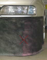 OK now that I have your attention, x marks the spot where I need your help. I plan to have 2 ducts on each side of the "mouth" feeding air to my front brakes via tubing. Maybe a foglight/brake duct combo, I don't know. Tell me what U think..... |