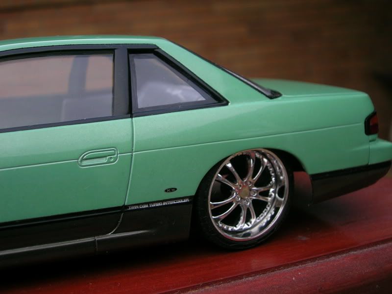 the paint and trim look great. is that a photoetch emblem on the trunk? the only thing i would change is to push the wheels out closer to the fenders. they're sunk in too much.