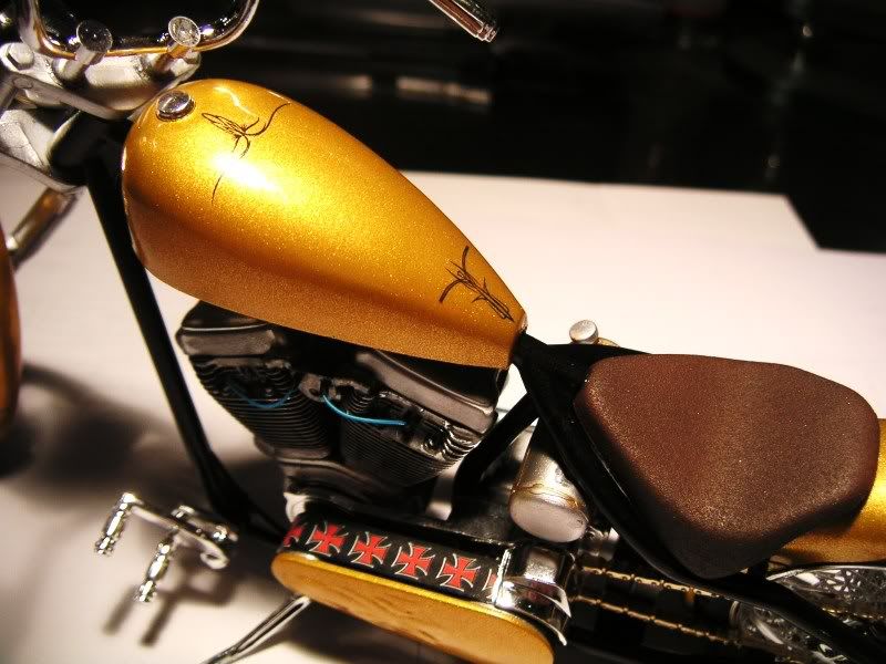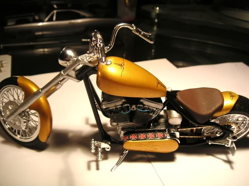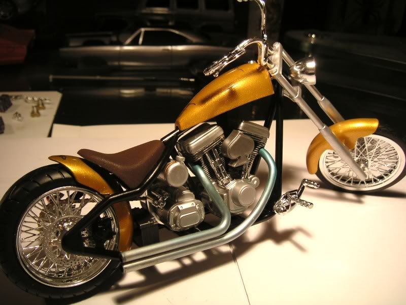 So here is my feable attempt at making a Revell "The Gambler" Chopper... this is truly one of the worst models I ever built - not the Revell quality but my building techniques... I made so many mistakes that I began to think this model was cursed somehow...