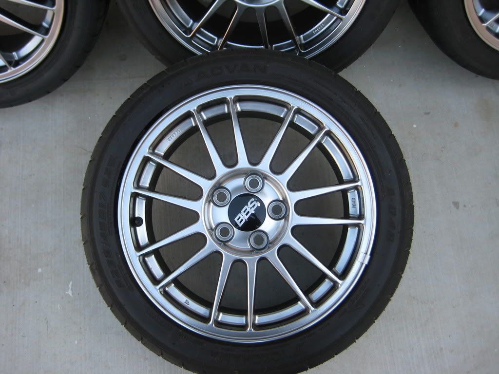 A: ![]() B: ![]() both are OEM evo BBS wheels, one is the MR and one is the SE and i was wondering which i should buy... they are within about $120 of each other including shipping, and both sets are in great shape! they both come with tires (advans) nice! however, the MR (less silver color) rims come with tires with only 9k on them for less $$$... where as the SE (silver looking) come with tires with only about 35% of the tread left over for more $$$$! which ones should i go with? keep in mind my DSM is black...