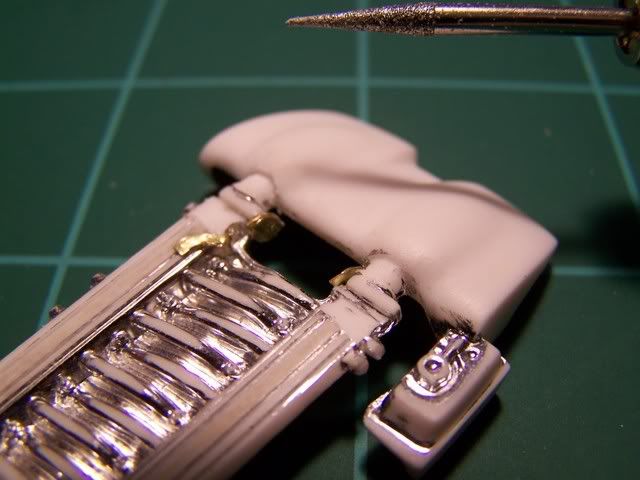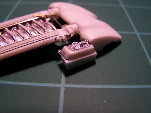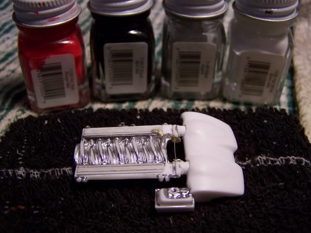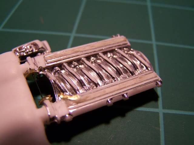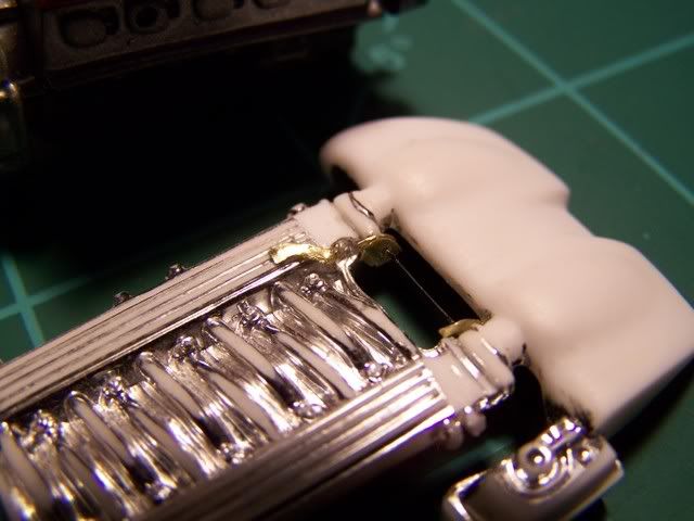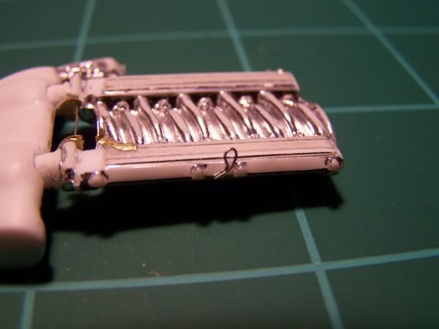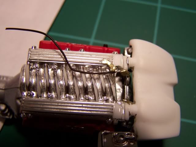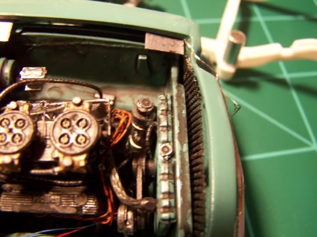 Back with more, Yes sid I filled in the rib in the middle with testors Contour putty white Then smoothe it out so that there are only two ribbs showing. Then I thought the air in take cover looked to fack so I drilled around the air intake to make the cover look more real. I replaced the throttle link bar with a peace of thick wire and not black plastic.