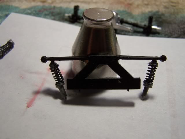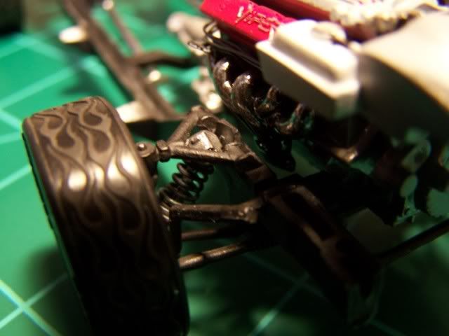 Now you know that after I made the dip stick hole I said some thing about the Exaust assembly well I thought that this build should be built like the real one so I decided to chop up the Exaust line and add some thing you all have seen on real Exaust pipes ends or connections these parts are made out of Styreen plastic (evergreen). 015 thick [Plain] then use .025 rod for the bolts. heres the first images of that build the the dip stick thats made from thick racing car wire [black]. ![]() ![]() ![]() ![]() ![]() ![]() ![]() ![]() ![]() now I only used a lite amount of chrome paint to get that black chrome look. They tell mae thats what pipes look like befor you heat them up and the thin look like brass. if this pips where allready chromed I would have made them have that brass and blue burn look sorry and No I don't have decals for that will. "there on there way" ![]() this is just the dip stick in place. ![]() ![]() ![]() I wanted my model to look even more like the real thing so i used some of my Resin Disc Brakes from the reference photos from the artists in HOT ROD Mag. the brakes where big the ones that come in the kit are not right for me so I used my brakes. ![]() ![]() ![]() I had to make some coil overs to make the look of real suspension. [A lot went in to this]: ![]() ![]() [THIS IS A TEST SHOT FOR THE RIGHT SIZE] of coil: ![]() ones I found the right size and type,(on the left the copper coil was to thin, on the right the plastic cotted wire was the right thickness that I needed). I then used a 3/32 rod of brass (K&S # 5126) to rap the wire around, to acheve the right and same size as the cut off stock. ![]() I then drilled out some (not to deep holes) for mounting the fack shocks, which are made of rod styrene (.025 # 219 for the small one-3/64" # 221 for the large silinder)this is done for front and back suspensions: ![]() ![]() ![]() ![]() ![]() I should have shown the images of the rolling chassis but the up load images part of photobuckets not up yet but i eill post images of that soon. Back the the build The Cool Can I made on for my Mustang II Pro. I used my image as a reference point to make the only 2 I have made. what i used the make the cool can (K&S 3/16x.014 Alum tube) for the large part and (K&S 1/8x.014 Alum tube) stock #5102,5104. And yes the is a oilsump on the engine. I drilled to holes on the can and I'm going to make some small fitting for my breaded lines I don't have the right size of fitting so I'm going to make them my self. ![]() ![]() ![]() now I going to paint the rear suspension with the coils on. ![]() ![]() ![]() ![]() ![]() OK the Gas tank is to be Red with black straps, the hole "Fram" or Chassis needs to black so I painted the G-tank red and used Liquid Latex as a mask first time ever doint that lol: ![]() ![]() this si the cool can and where it's located on the chassis. Oh and Ll the brack lines and oil,gas lines feed in the the box chassis and I'm going to do all that to. ![]() this is to show the hight of the cool can under the body. ![]() ![]() now I have more images to show soon as i cant uplode them to photobucket I'll post them there of the true rolling chassis with the wheels and tires on and the mufflers to. Oh Yah for you all how are working on the project or a tuner project the drive shaft is Carbonfiber mmmm the black and gray type this will look good on the under body on most Imports. I'll post the new images soon and thank for looking. some thing that sliped my mine I for got to tell you, you need to sand off the words on the gas take. Images of that: ![]() ![]() now for some more images and the site where I got all the engine views chassis looks from: http://www.hotrod.com/featuredvehicl...inder_concept/ just click on the images to see them bigger. Now on to the chassis build. After you paint over you latex mask remove it and just tuch up the black straps with a fine tip brush. ![]() ![]() ![]() ![]() ![]() ![]() ![]() ![]() ![]() [Next] the interior paint and flocking work. Oops I didn't see you down there sorry for running you over! http://s162.photobucket.com/albums/t248/White_r34/ Last edited by white_R34; 07-18-2007 at 04:53 PM. |