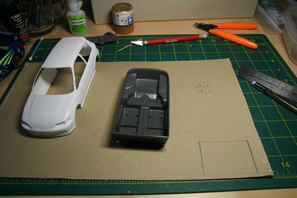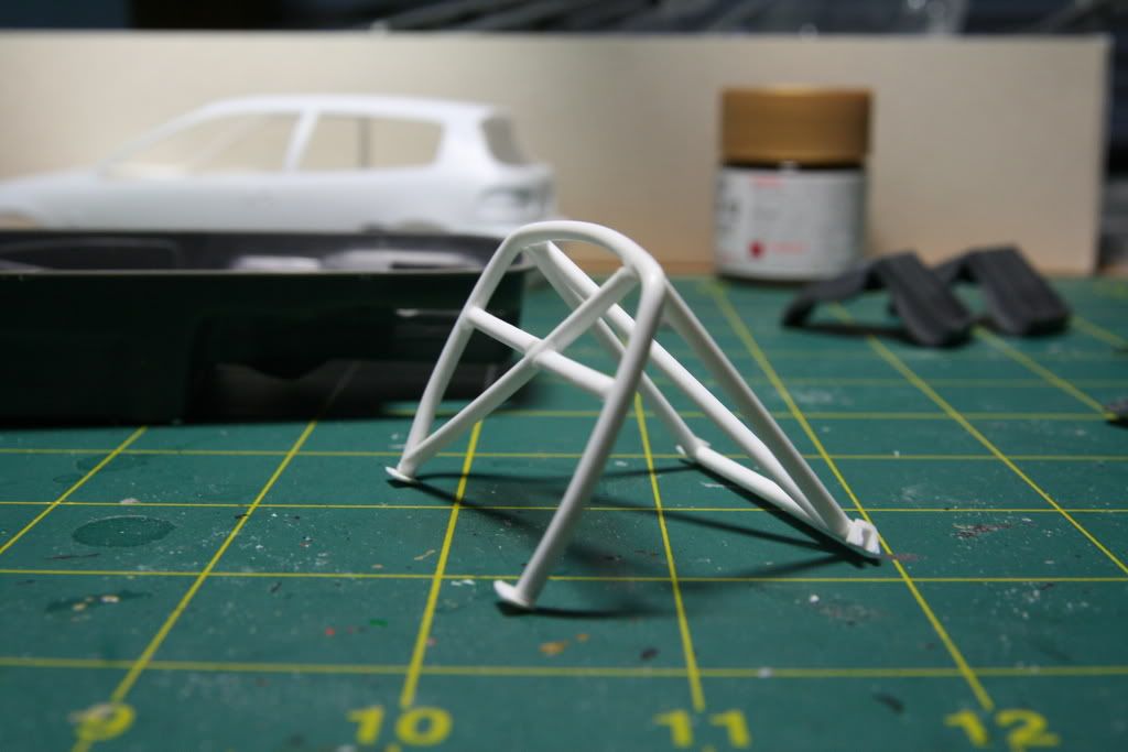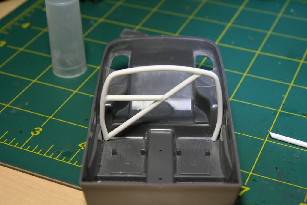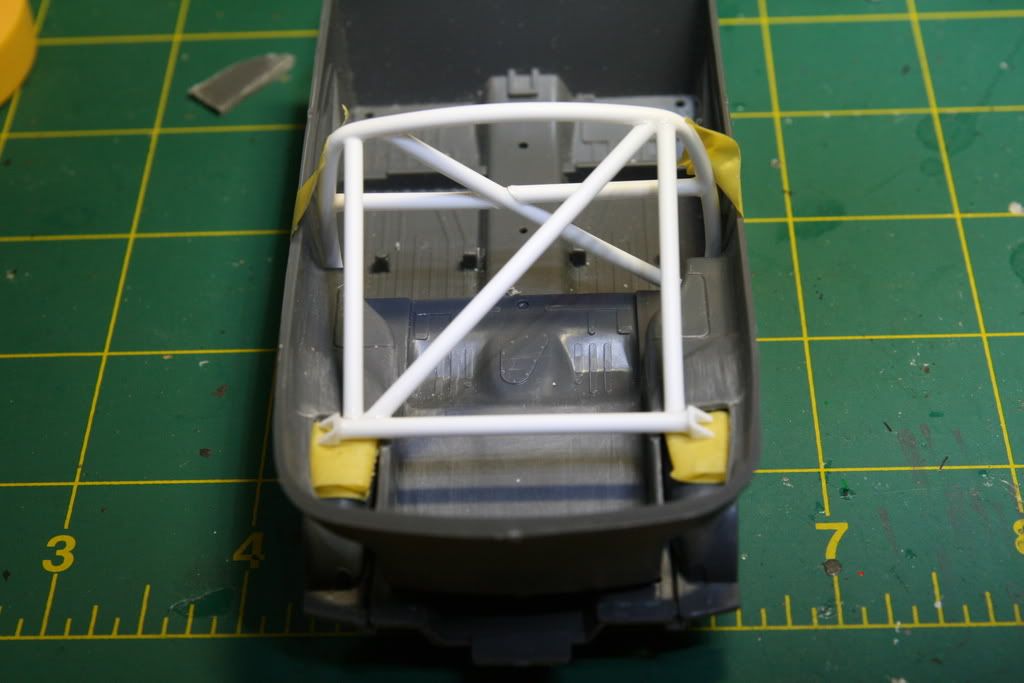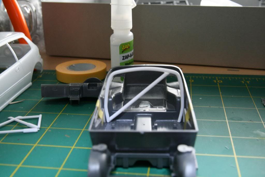 So I started the kit by building the main hoop and this is what I have so far. ![]() ![]() After taking some measurements of the interior. I drew out the shape of the main hoop on an old model kit box. So I could use the stiff cardboard as a template. ![]() I erased the guide lines to get close the final shape ![]() Cut out the shape ![]() I cut out the template and test fitted in the interior, some trimming was needed but I was pretty spot on. You can now see the shape I'm going for. The seats are from the Tamiya Celica SSII these will make a nice street/race seat for the civic. ![]() Inside the body checking clearances ![]() Now to make the rollbar I used Evergreen 3/32 diameter tubing, it is very easy to bend and form. I set up a jig with push pins and a piece of plywood. The hair dryer helps a bit to set the final shape. Just be careful not to melt the plastic. I actually found it was easier to make one side and then flip it to make the other side. Not an exact science but I like the result. ![]() ![]() ![]() I trimmed the rollbar and test fitted. Looks pretty cool I think. ![]() ![]() ![]() Adding a diagonal bar, I'm going to add a harness bar too. ![]() ![]() Finally I opened up the rear cargo cover access panel areas so I can build a strut tower bar and connect down tubes from the rollbar.