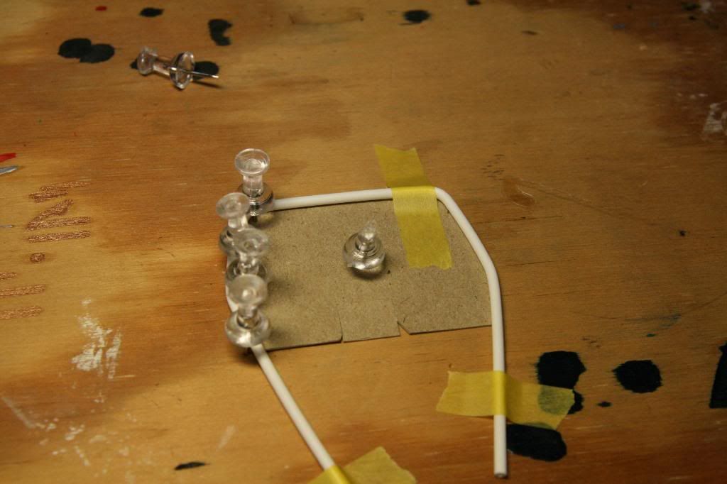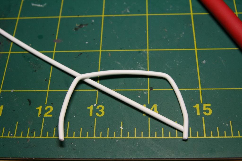 I started by making some triangles out of Evergreen square stock. Hard to see in the picture. ![]() I then connected the to pieces with some round stock. ![]() Now it needs a harness bar, this shows half of it done ![]() Down tubes, cross bar installed and connected to the strut bar. ![]() I am super happy with the way this looks, now its time to start painting.