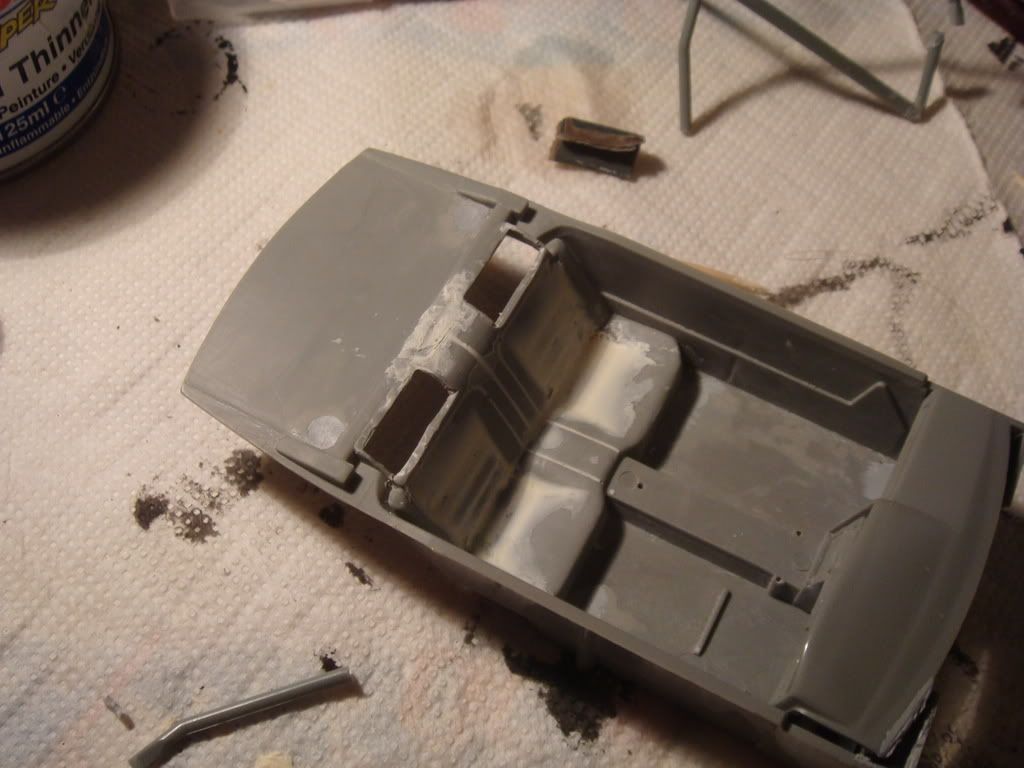 now it's time for the interiors which, for one reason that I cannot understand, are the street type one, so i had to cut the backseat heads, but now I need help to go on. Please say me what to do. You can see all in the pics, also my attempt to scratchbuild a rollbar with sprues. ![]() |