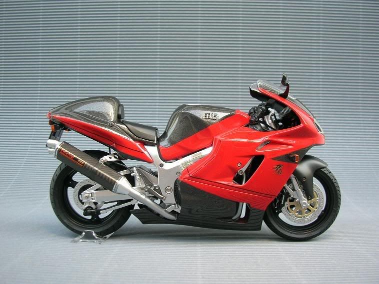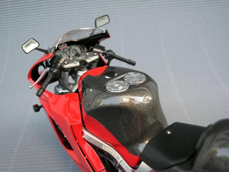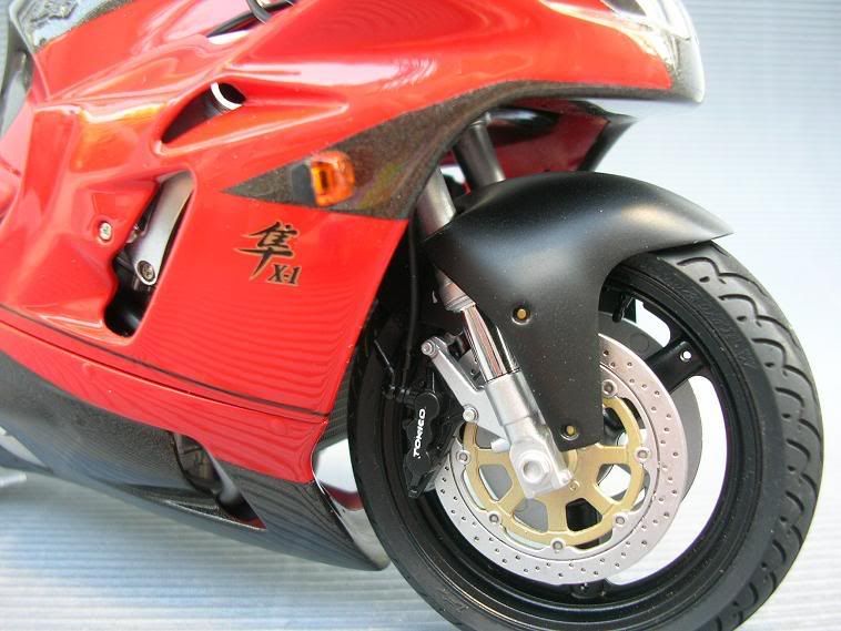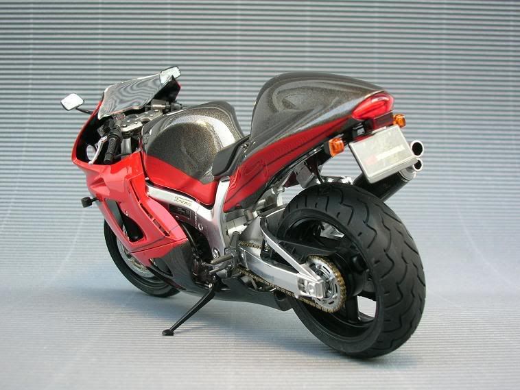 I've build this one also. The shine looks great. Maybe you could do some heatstaining on the exhaust. I have a picture that shows a lot of blue and purple in real. To have some more details on the brakedisc you can drill the little holes and add a light wash. |