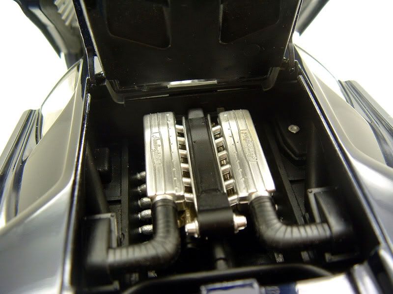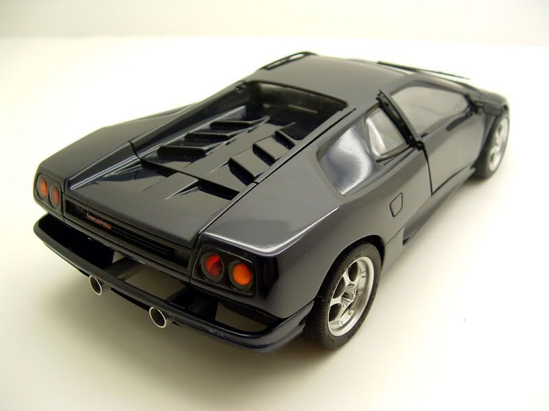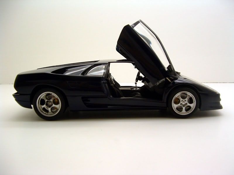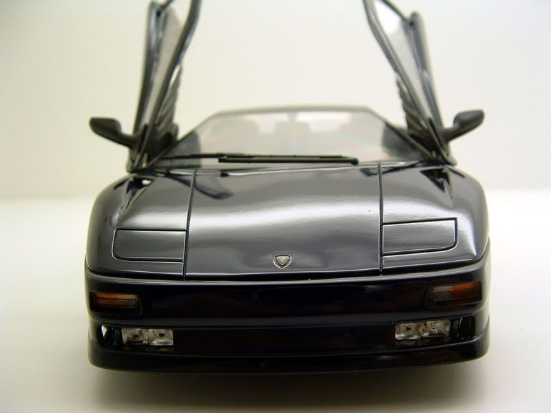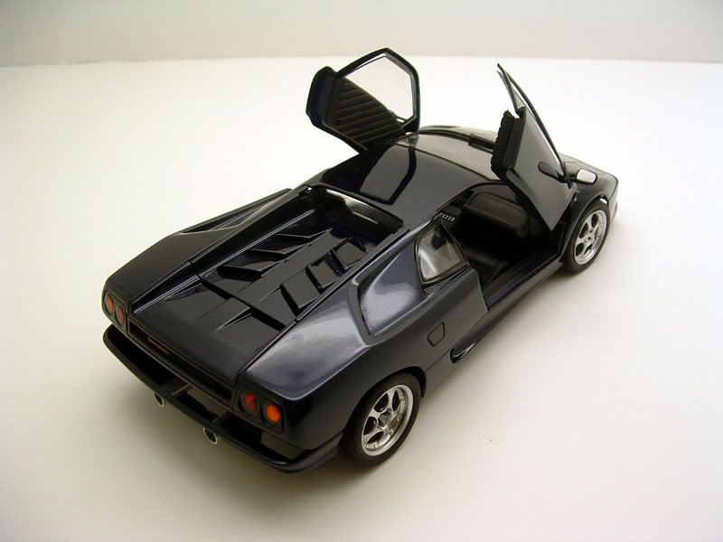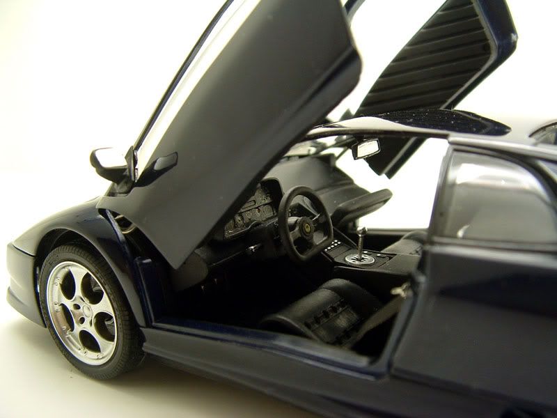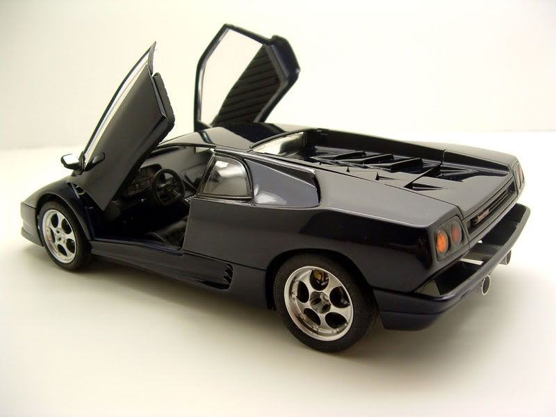 My latest project is this piece-of-something-else Fujimi Lambo Diablo modified by Koenig. I've never seen one completed, so when Squadron had them on sale for $10.63, I decided to try and build it. The kit is decent, but the door fitment is just not very good. So, this one will be displayed with open doors. Pardon the dark pictures and dust .The exterior was painted with TS-53 Deep Metallic Blue straight from can. ![]() I stripped the original plastic chrome, and used the TS-83 Metallic Silver over Gloss Black. ![]() ![]() ![]() I love the original OZ wheels, so I decided to keep that one for other project. I used wheels from Lambo Murcielago instead. ![]() ![]() Some paintings for the engine compartment. ![]() The shifter and gate were also painted using TS-83. ![]() There is black flocking there somewhere .![]() ![]() Here is the fitment problem I was talking about. The doors will never closed properly, there is another version of Diablo with closed doors which I bought for $12.63 from Squadron. So, that's the next project. ![]() ![]() I like the wingless look on Diablo. ![]() Thank you for looking, comments and critiques are encouraged. |