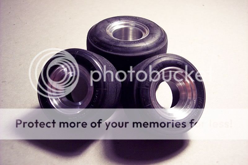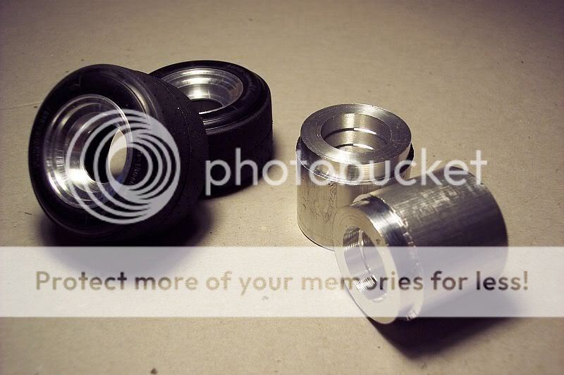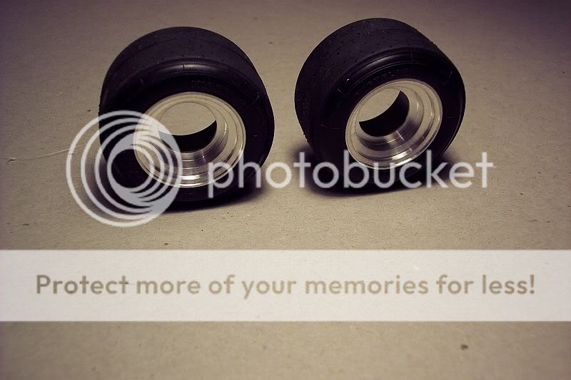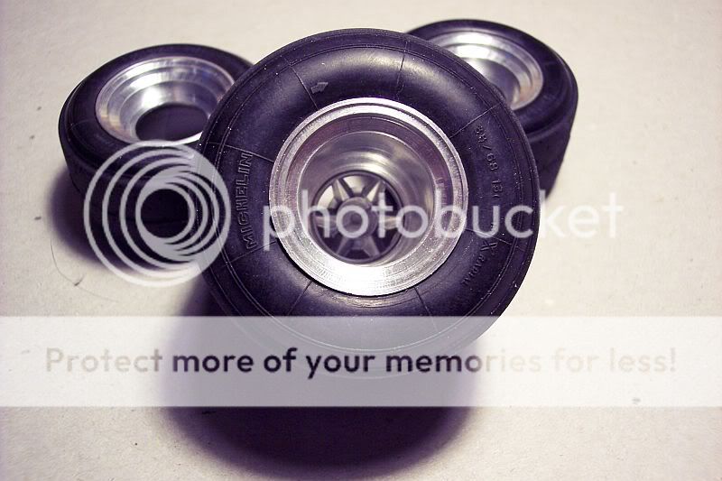 Hey everyone, although I have the Pocher F40 WIP going, I joined the '09 Group Build on another forum and the subject I chose was the RE 20. This will be a full-on build, not a throw it together job, so I thought I should devote a WIP thread to it, separate from the F40 WIP. No sense in hijacking my own WIP, right? Anyway, it's early-on in the build and I am still aquiring all of the necessary bits and pieces, but I did post a couple of pics on the F40 WIP, but I'll duplicate them here, so this WIP is a complete work. For all who didn't see them, here are the wheels I turned up. The fronts need milled and smoothed and polished, the rears are still slugs and only rough turned so far. There are a couple of pics of the first rear I turned, but it is dimesionally incorrect, so it's junk. I showed it next to the kit wheel for comparison and with the kit center pressed in for effect.