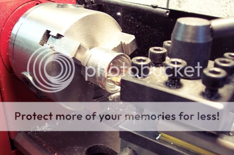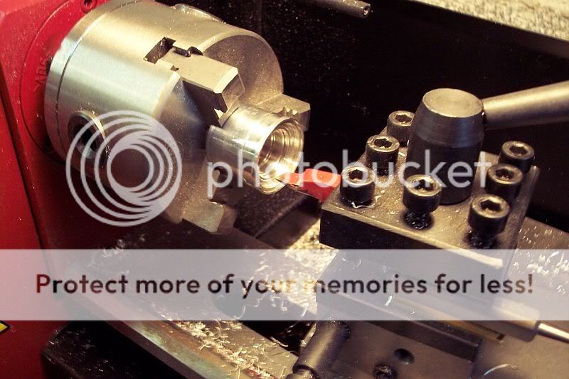Okay, got the wheels pretty much done on the lathe, still have to mill the bead locks, air valves and bolt holes and then they're done! Clay had asked for some shots of the wheels chucked in the lathe, so here ya go...