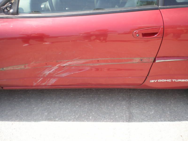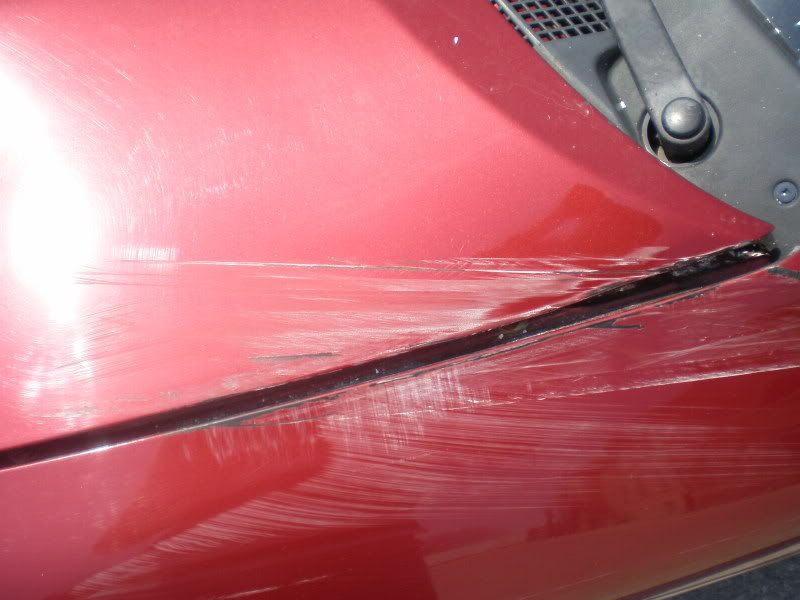 Rear quarter panel has a scratch in about 2 ft ![]() No comment ![]() Rear quarter panel angle showing huge dent and scraped and broken guard. ![]() Driver side front quarter panel (great rack eh )![]() Hood AND quarterpanel not pictured the black piece underneath ripped up too. Hood is bent too. ![]() Now the really good stuff Mirror (or should I say lack there of) and Apillar ![]() That will just buff right out ![]() Door destroyed and bent in ![]() nice eh! ![]() Thats about it How much you think this is gonna cost to get it done back to primo? Not like I'm paying but what a pain in the ass