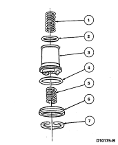 ![]() Item Part Number Description 1 7F284 1-2 Shift Spring 2 7F248 Accumulator Piston Seal 3 7F251 Accumulator Piston 4 7F249 Lower Accumulator Seal 5 7G267 1-2 Accumulator Outer Spring 6 7G300 Cover and Seal Assy 7 7384 Accumulator Piston Retaining Ring